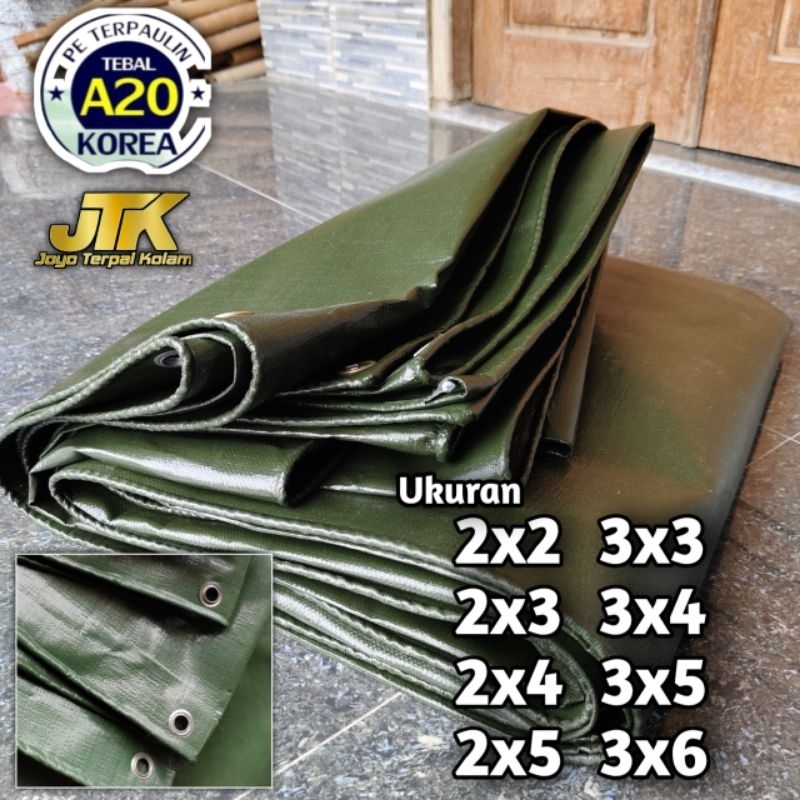 Terpal Plastik A20 Korea Hijau Army ukuran 2x2 2x3 2x4 2x5 3x3 3x4 3x5 Super tebal waterproof