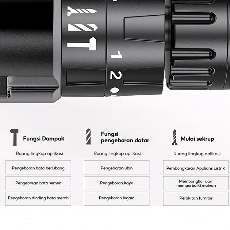 SOARFLY Mesin Bor Baterai Cas 2Baterai 13mm/10mm Bor Impact Fullset Tanpa Kabel Listrik