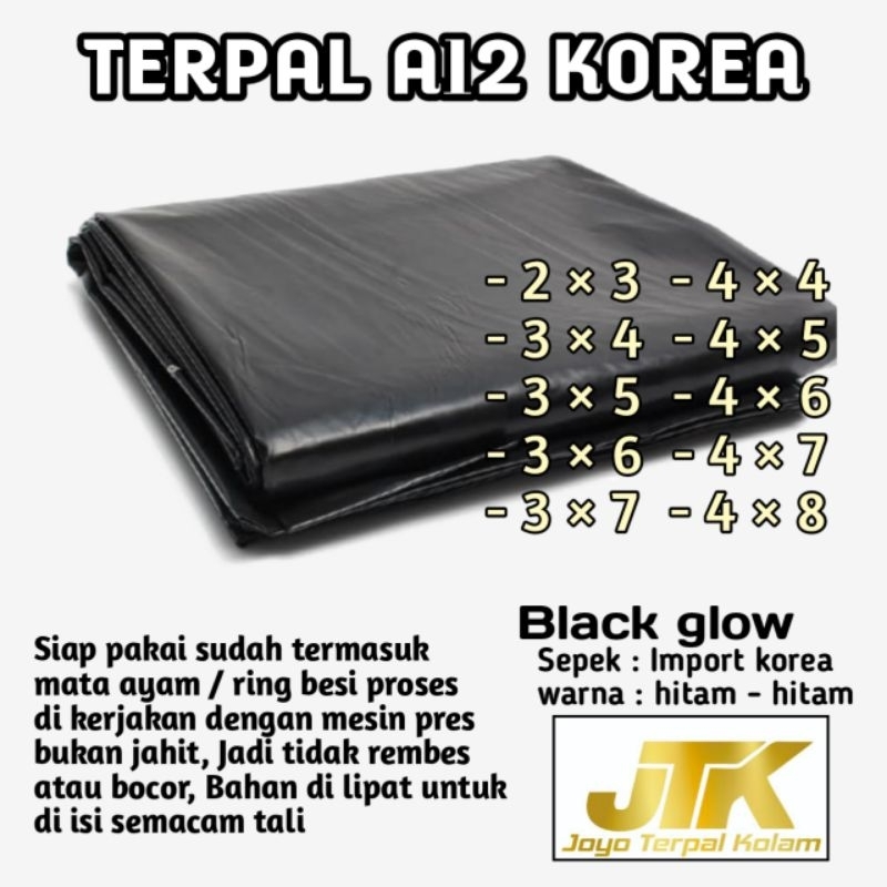 TERPAL A12 KOREA warna hitam, kuat dan tebal, waterproof tersedia ukuran 2x2 2x3 3x3 3x4 3x5 4x4 4x5 4x6 5x5