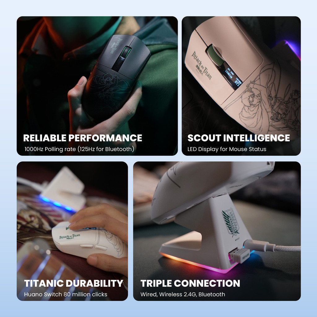 [Exclusive Launching] Rexus x Attack on Titan - Mouse Gaming Wireless LED Display Levi Edition with Docking