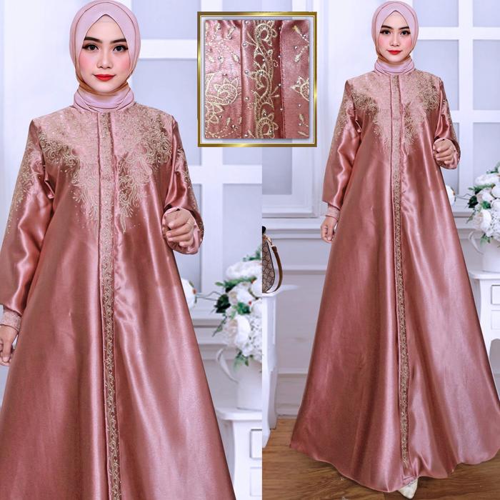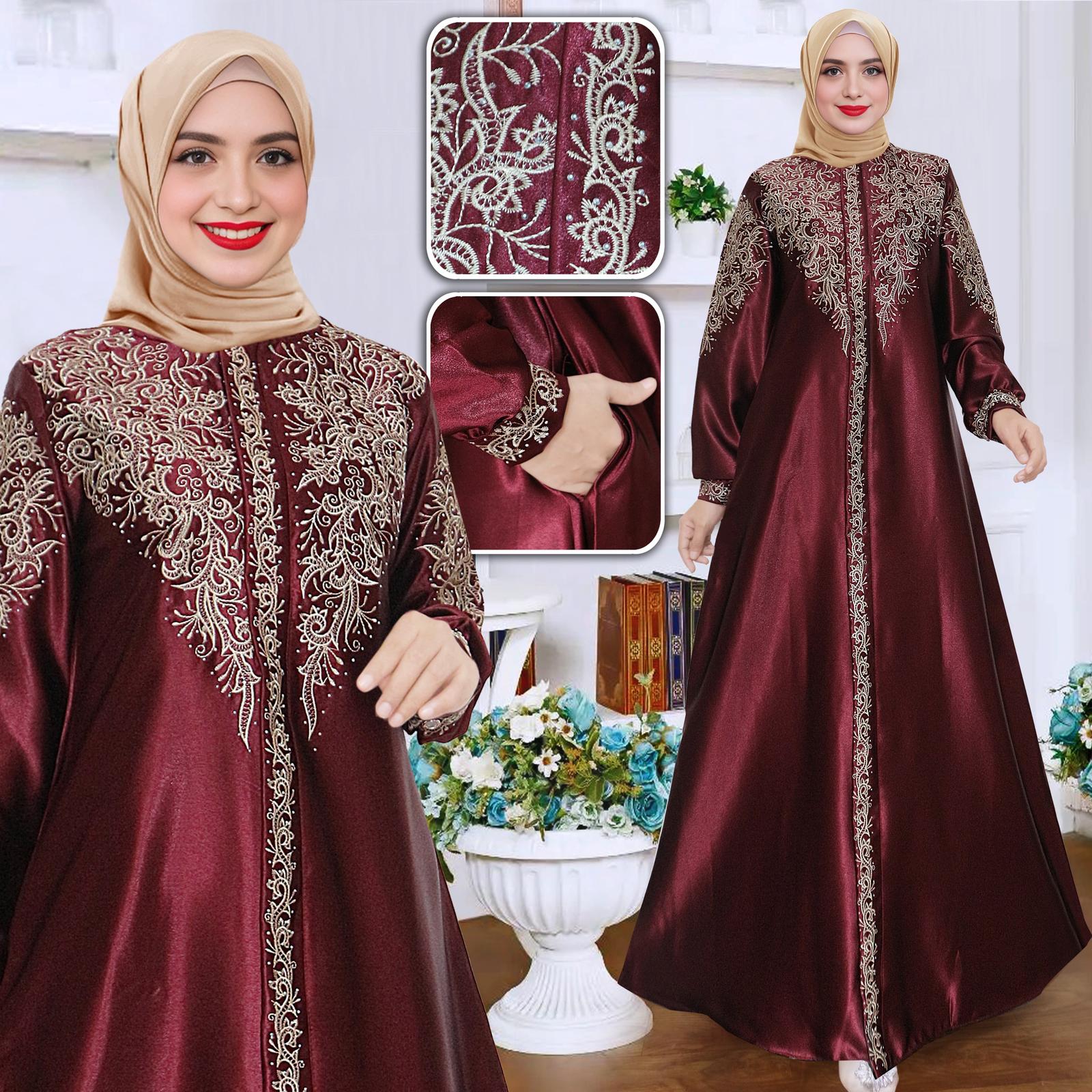 Gamis Bordir Mewah Terbaru Bahan Satin Kristal Bunsui Dress Abaya Pesta Elengant Wanita Terlaris