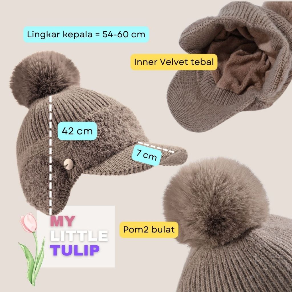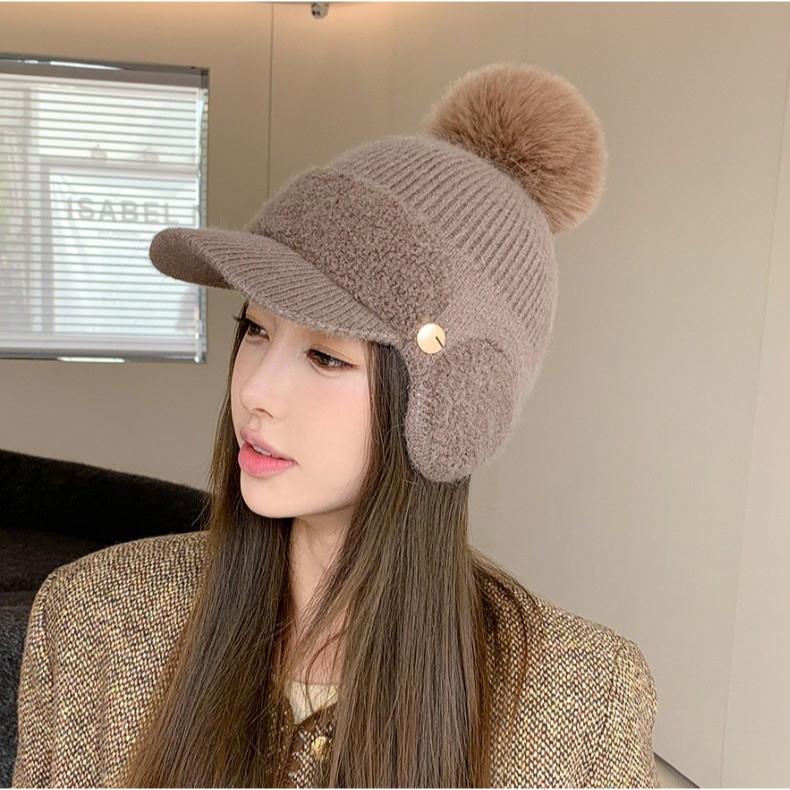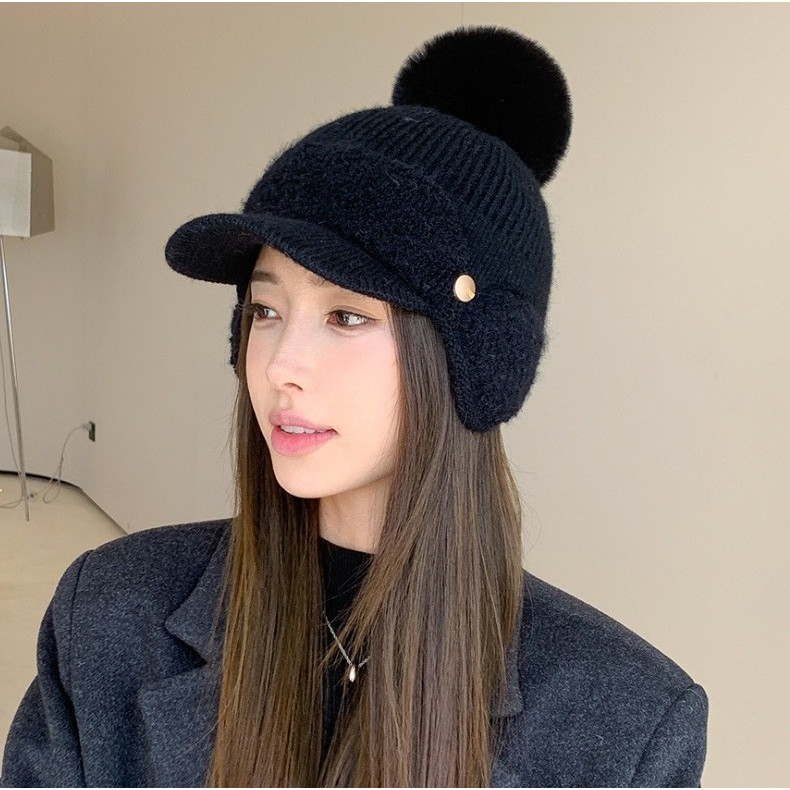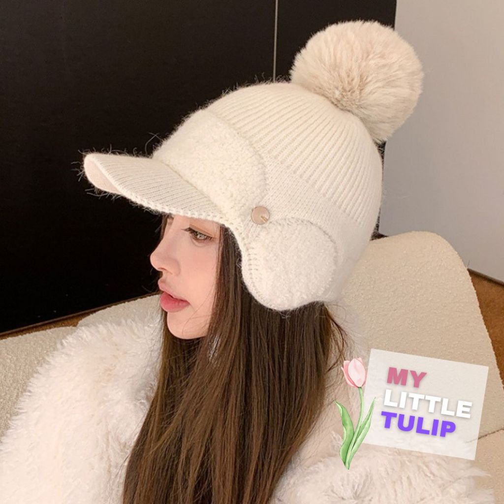 Topi Pom2 Winter Cewek / Topi Baseball Pom-pom Cantik Lucu / Bisbol Cap Cute Rabbit Ear Winter Hat For Women Import