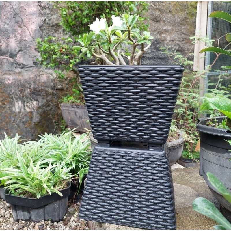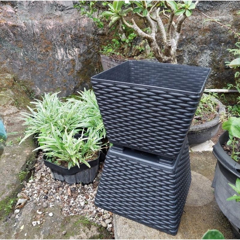 POT TANAMAN POT PLASTIK/POT BUNGA SEGI ROTAN 28 WARNA HITAM BAHAN TEBAL & KUAT