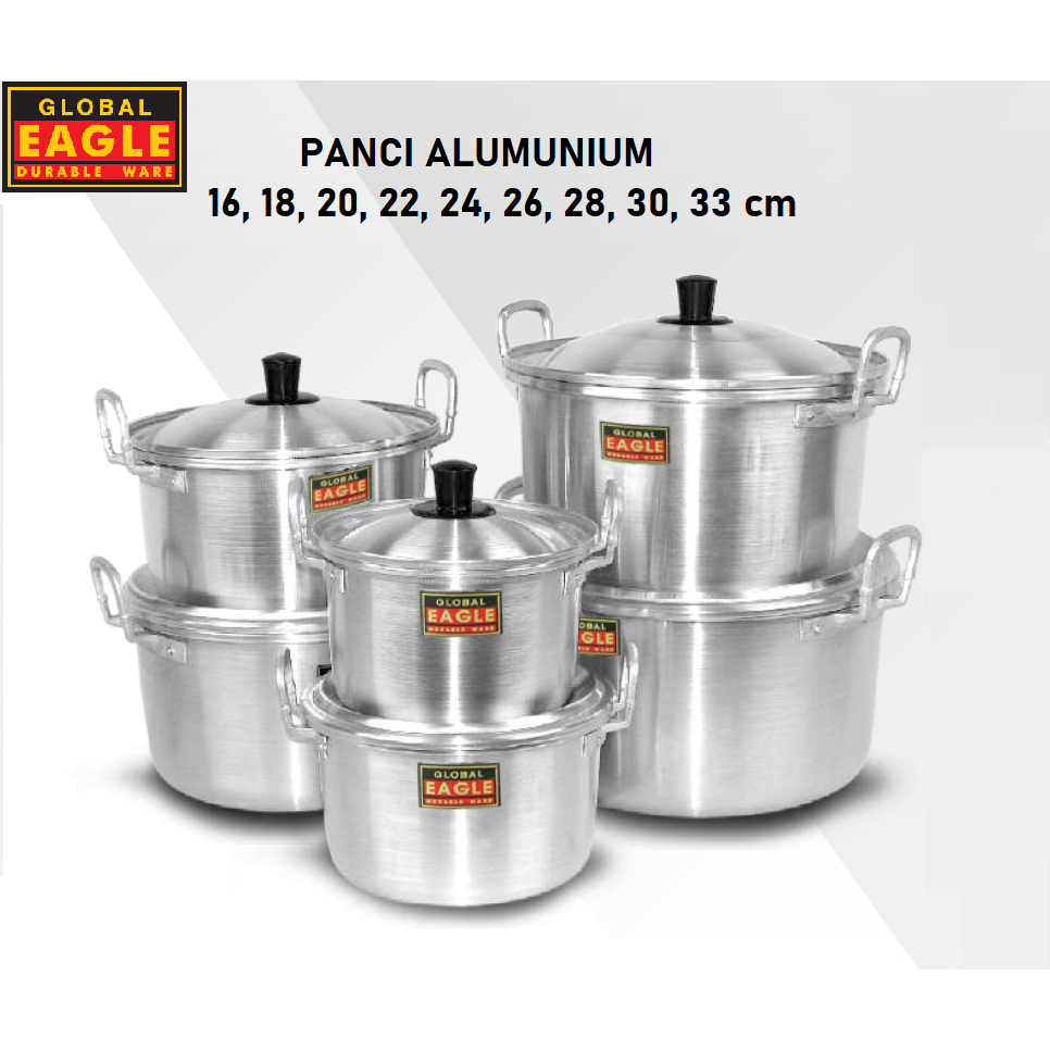 PANCI DANDANG MASAK AIR NASI ALUMUNIUM - PANCI GLOBAL EAGLE ALUMINIUM DENGAN ATAU TANPA SARINGAN UK 16 18 20 22 24 26 28 30 33 PANCI EAGLE