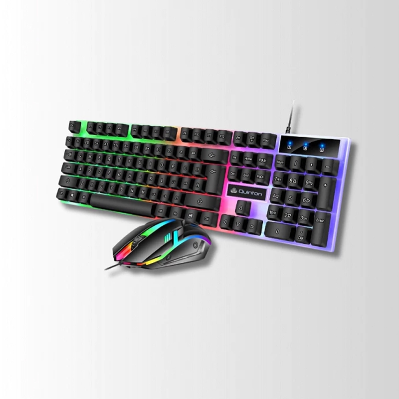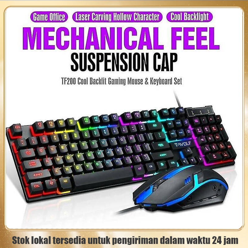 Kombo Keyboard dan Mouse Berkabel dengan Lampu LED RGB, Set 104 Tombol untuk Gaming, PC, dan Laptop Kabel USB / Keyboar