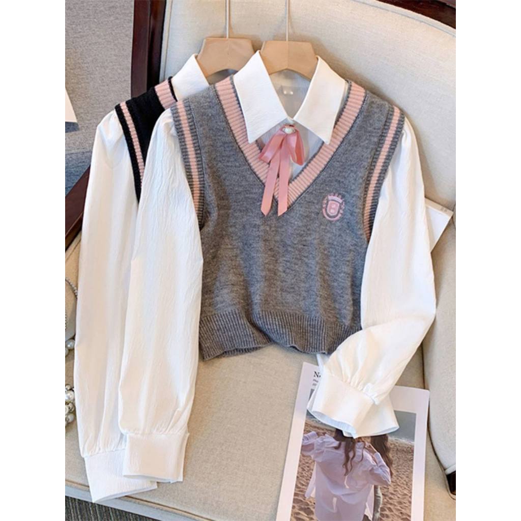 GS - Blouse Rajut Wanita Remaja Knit Wear Korean Fashion | el Seragam Sekolah Korea Lucu Girly Vest