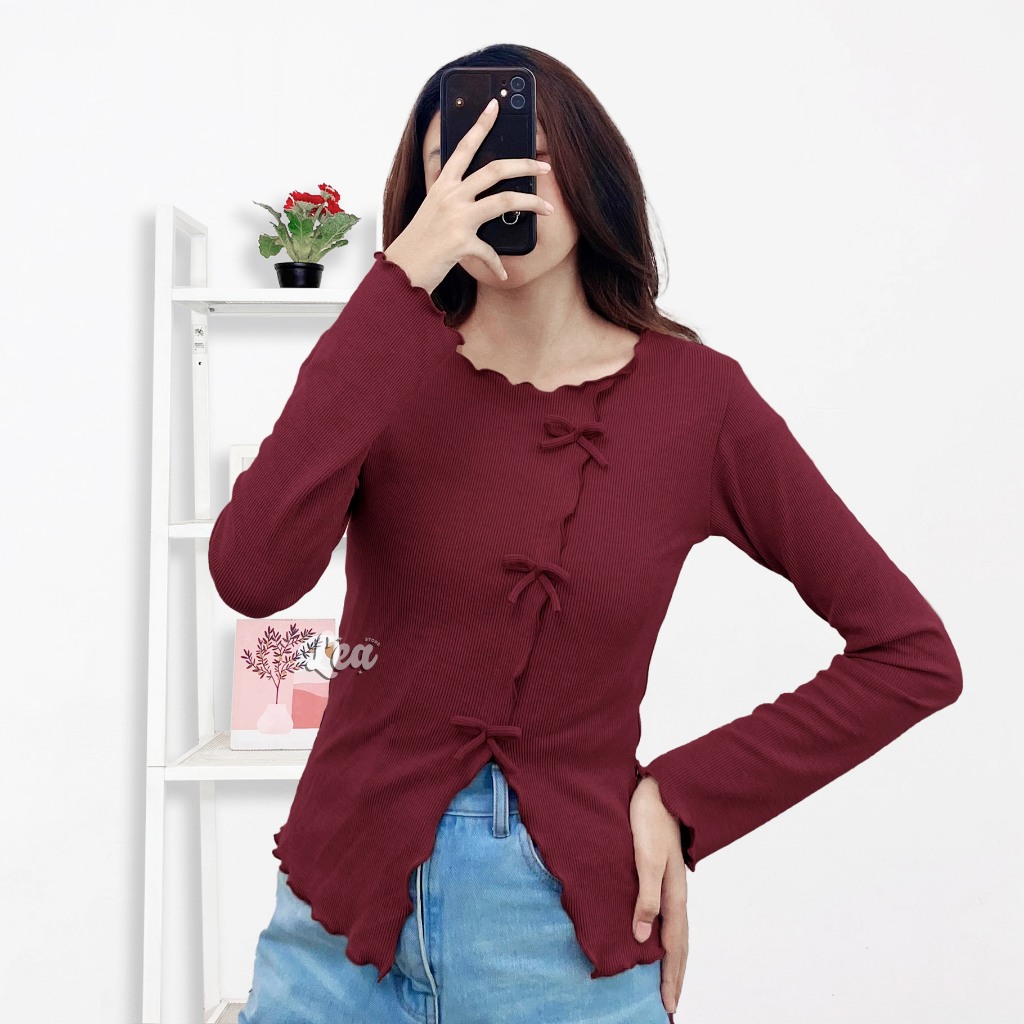 NETA BLOUSE WANITA – ATASAN KNIT BELAHAN TENGAH / BAJU PITA LEA STORE