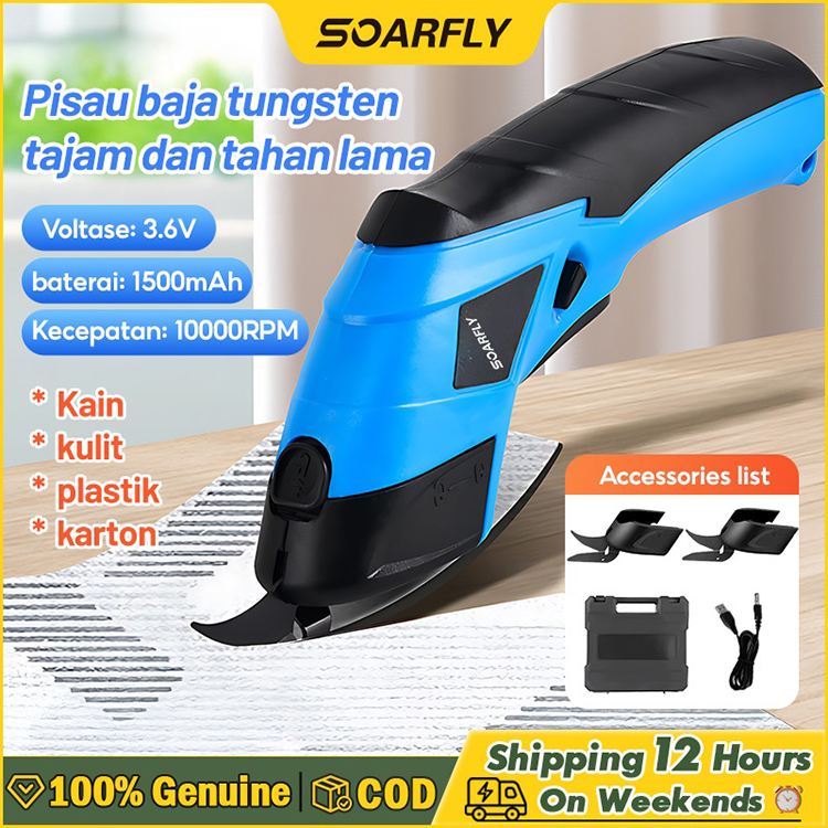 SOARFLY Gunting Listrik Pemotong Kain Portabel Tanpa Kabel 3.6V/2000mAh Pemotong Isi Ulang USB Portabel Alat Pemotong Mu