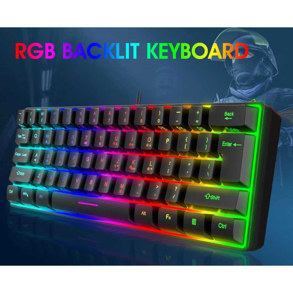 Y-FRUITFUL Keyboard Gaming RGB Backlit Mechanical Feel 61 Key Wired - K401