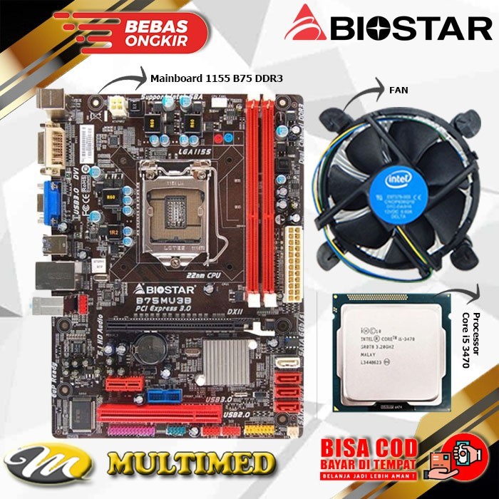 Paket Motherboard Mobo LGA 1155 B75 DDR3 + Core i5 3470 + Fan USB 3.0