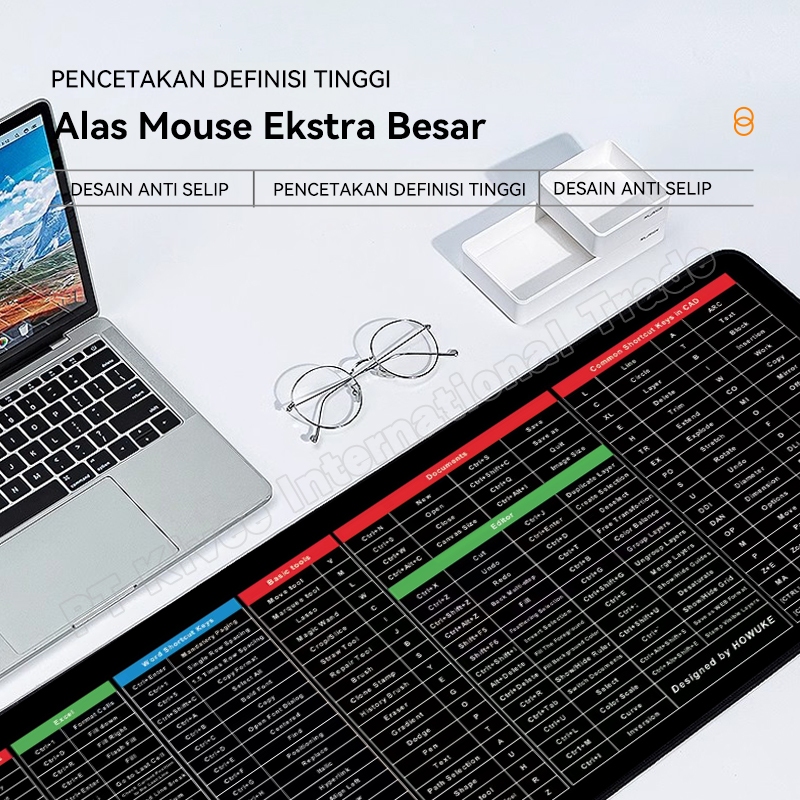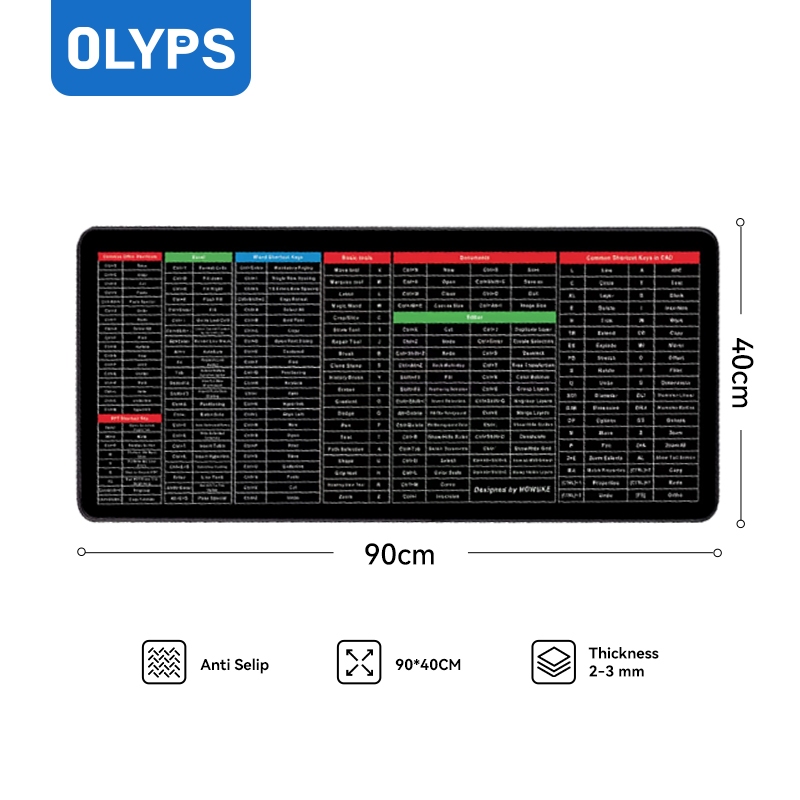 OLYPS Mouse Pad Shortcut Keys Excel Office Desk Mat Large Anti Selip Gaming MousePad - 90*40cm