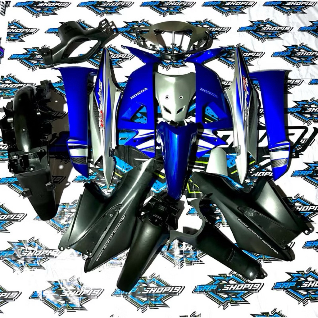 Full Set Full Cover Body Halus dan Kasar Motor Honda Supra Fit New Biru Silver. Terlaris / Termurah