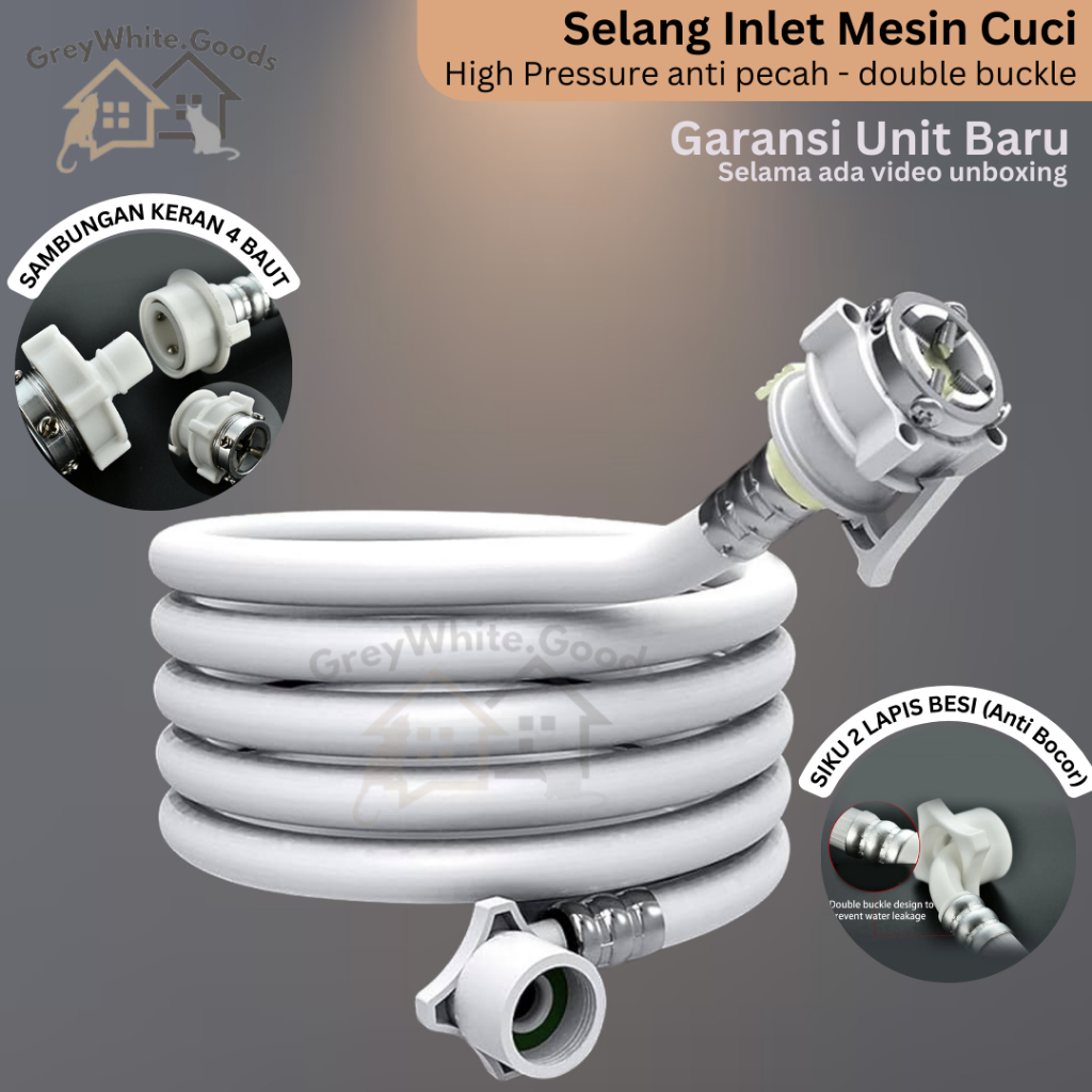Selang Inlet mesin cuci isi mesin cuci tabung serbaguna fleksibel 1/2" anti pecah double buckle