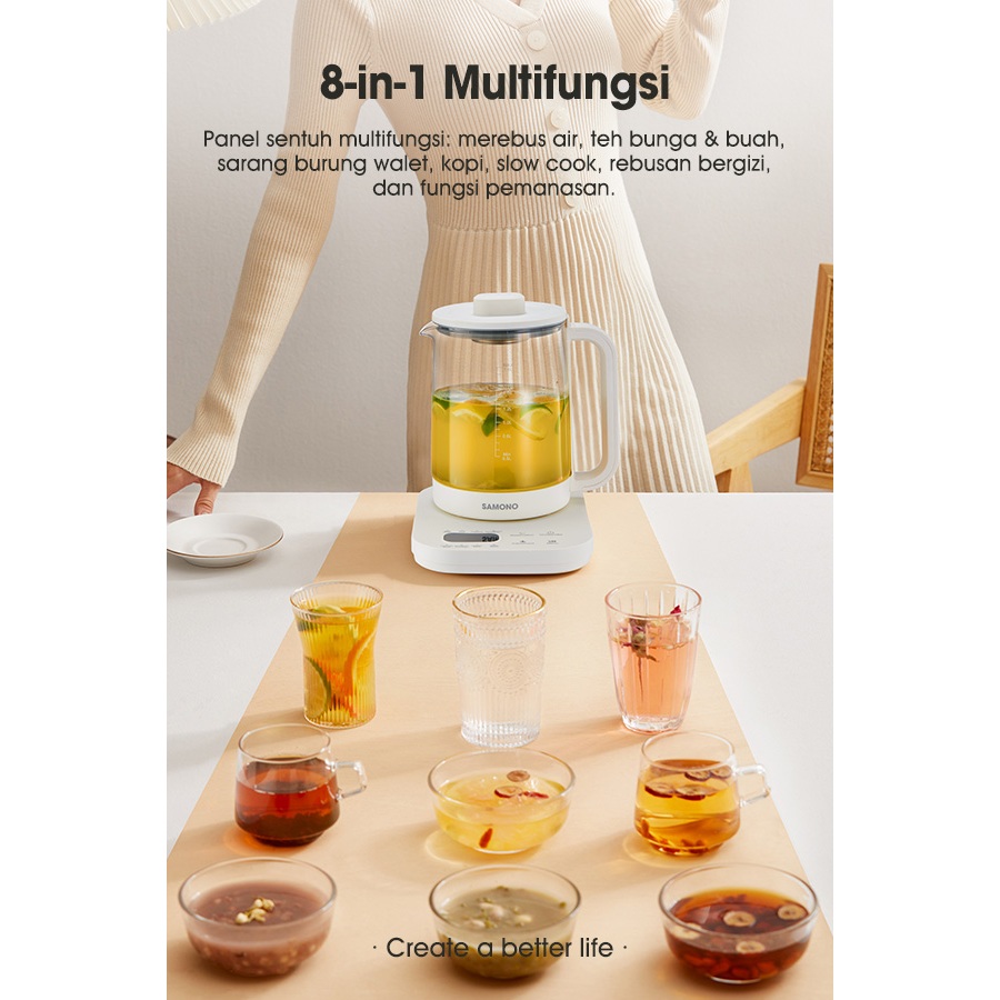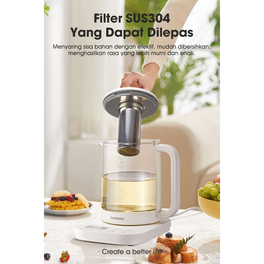 SAMONO Electric Kettle Infusser Multifunctional Healthy Pot 1,8L 600 Watt Infus Teh Rempah Teko Kesehatan SW-HP18L Garansi 1 Tahun