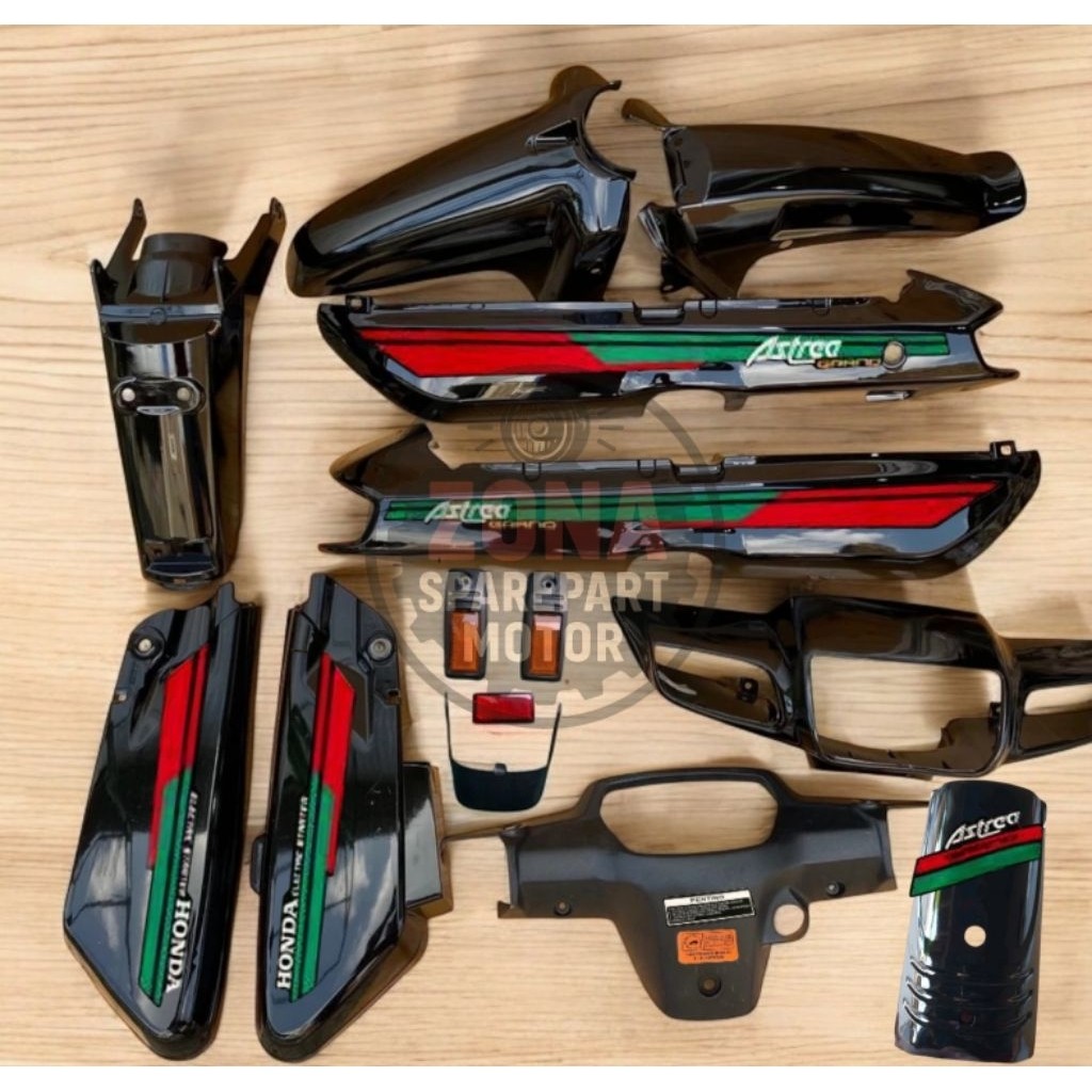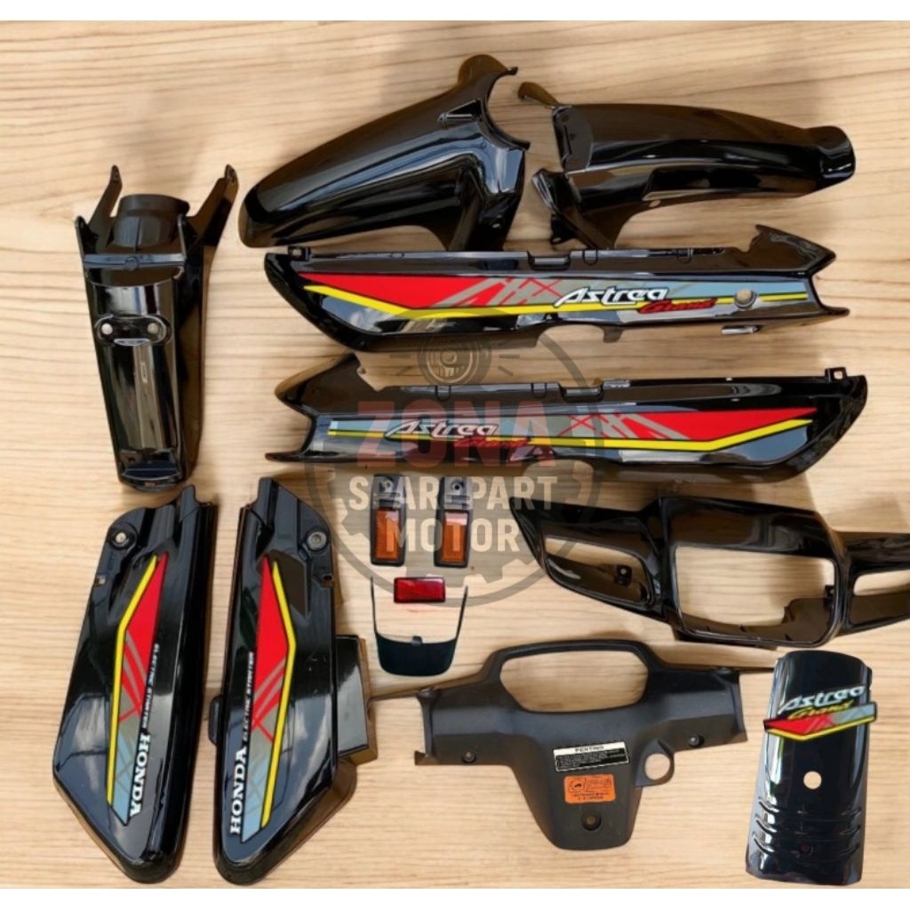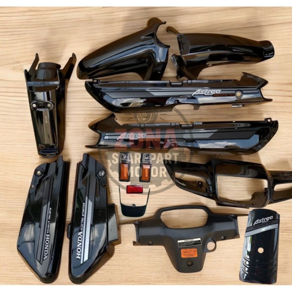 PAKET HEMAT COVER BODY BODI FULLSET HONDA ASTREA GRAND BULUS HITAM TH 91 93 SET STRIPING FULL