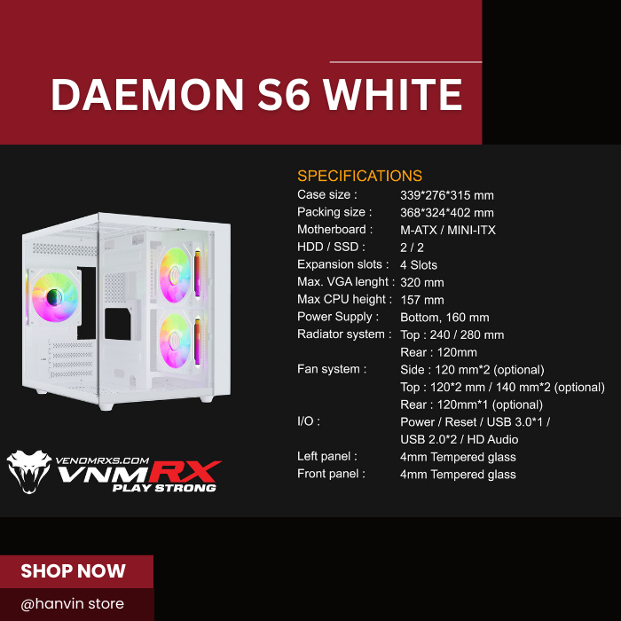 Casing VenomRX Daemon S6 White Tempered Glass