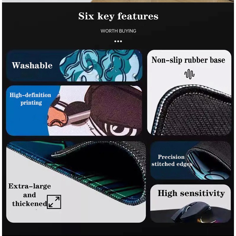 Black and White Sea Mouse pad Slip-Resistant DeskMat Custom Besar Lebar Gaming Mousepad Karet Anime Cartoon Aesthetic 80
