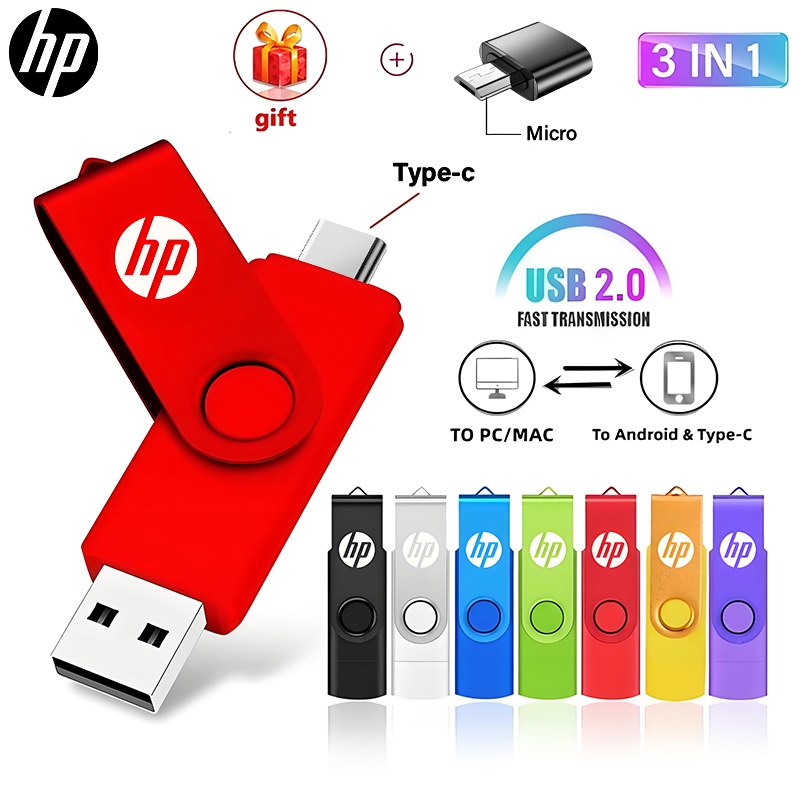 HP USB3.0 2TB flash disk 3-IN-1 USB Micro Type-c OTG flash drive 1TB 2TB Pendrive for Android hp/Tab