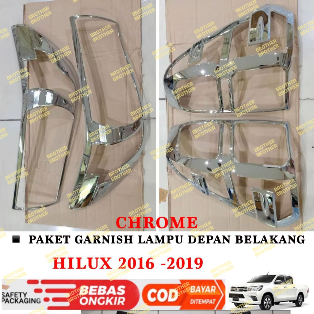 Paket Garnish Lampu Depan Belakang All New Hilux Revo 2016 2017 2018 2019 Hitam Chrome