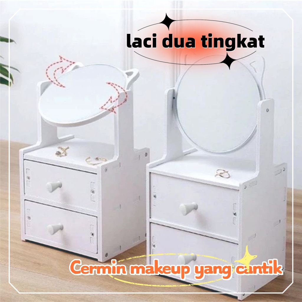 Rak Kosmetik Tempat Make Up /Rak Laci Cermin/Rak Makeup 2 Susun Dengan Cermin / Rak Cermin Make Up 2 Susun /