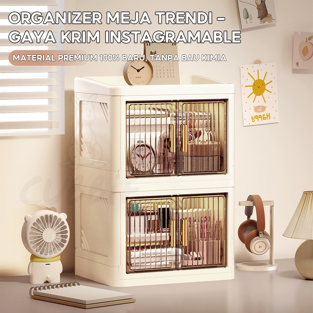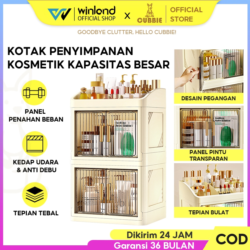 Rak Meja Kosmetik Premium | Rak Organizer Make Up Pintu Sliding Box Storage Makeup Transparan
