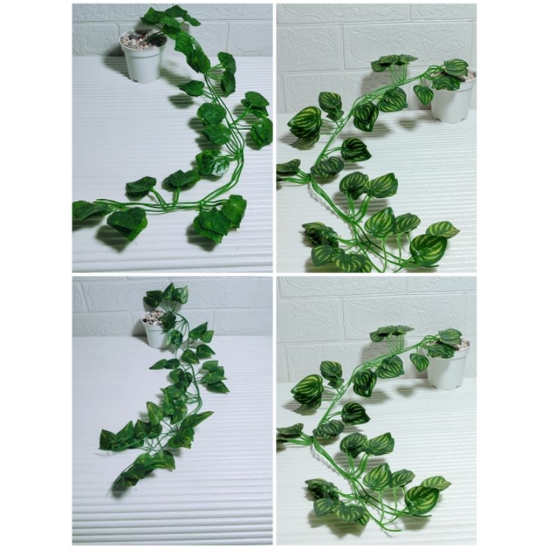 TANAMAN HIAS PLASTIK BUNGA HIAS TANAMAN JUNTAI DAUN RAMBAT + POT