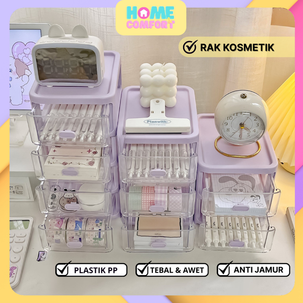 Home Comfort | Rak Kosmetik & Skincare | Laci Susun Plastik Organizer Meja | Tempat Make Up Serbaguna