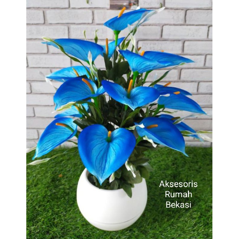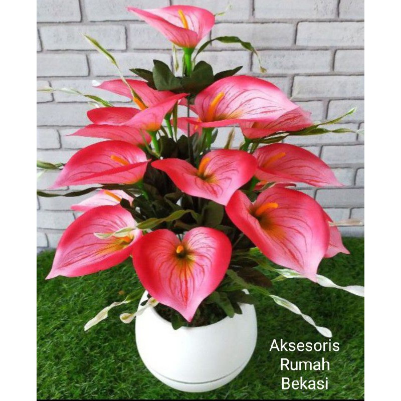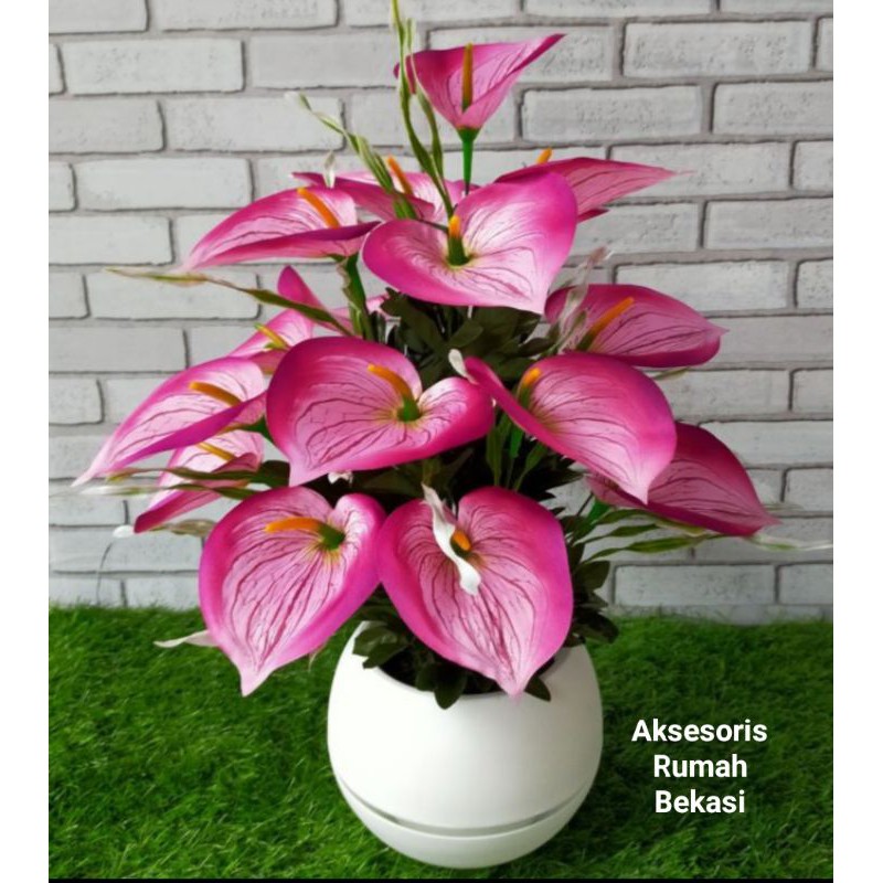 TANAMAN HIAS PLASTIK set bunga sudut anthurium / bunga Lily / bunga Aron dengan pot bola jumbo