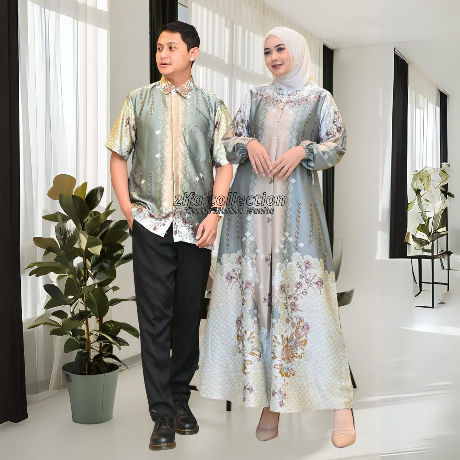 Baju Gamis Couple Kemeja Mauna Bahan Silk Premium Pasangan Mewah Elegan Bunsui Pesta Kondangan