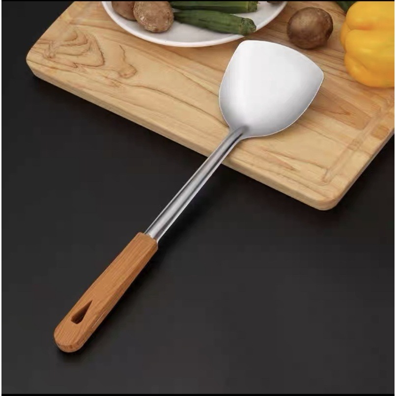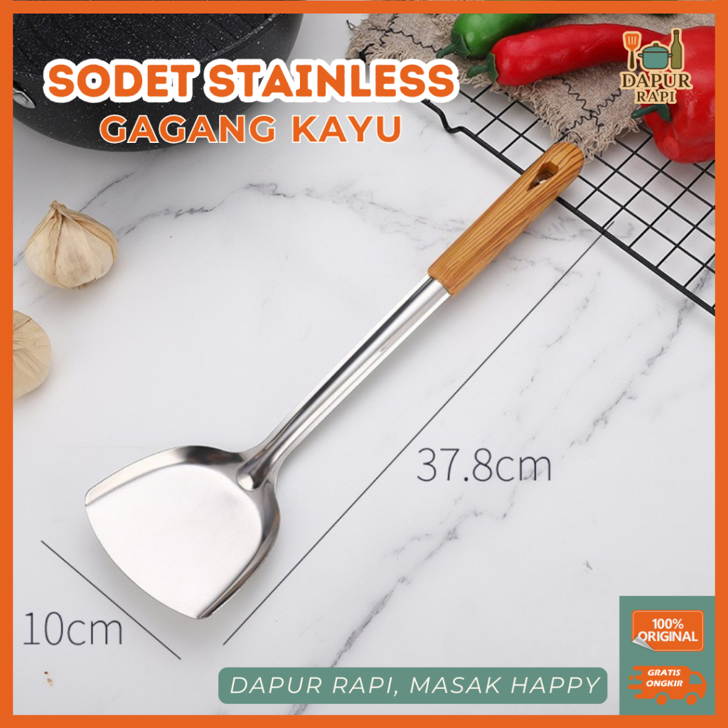 Dapur Rapi - Sodet Stainless Gagang Motif Kayu – Spatula Wajan Anti Karat 38cm S12-2