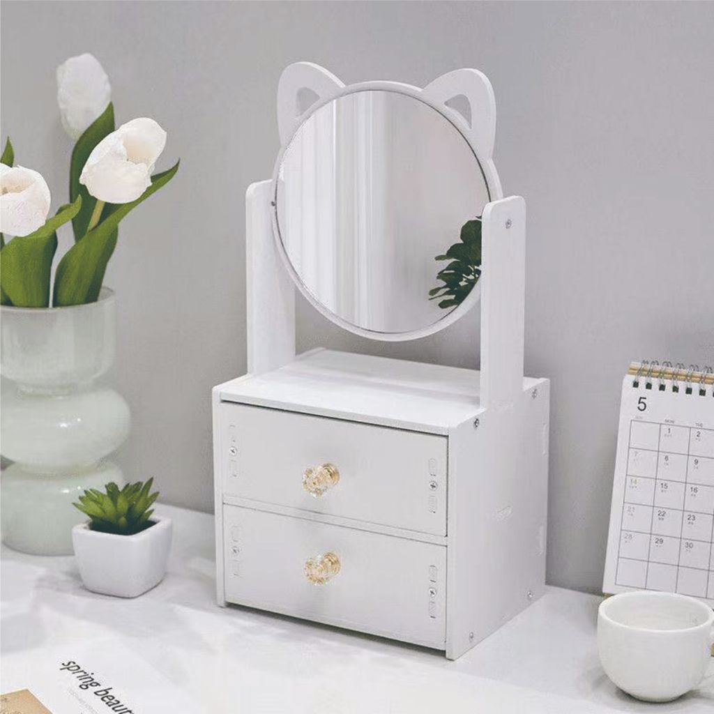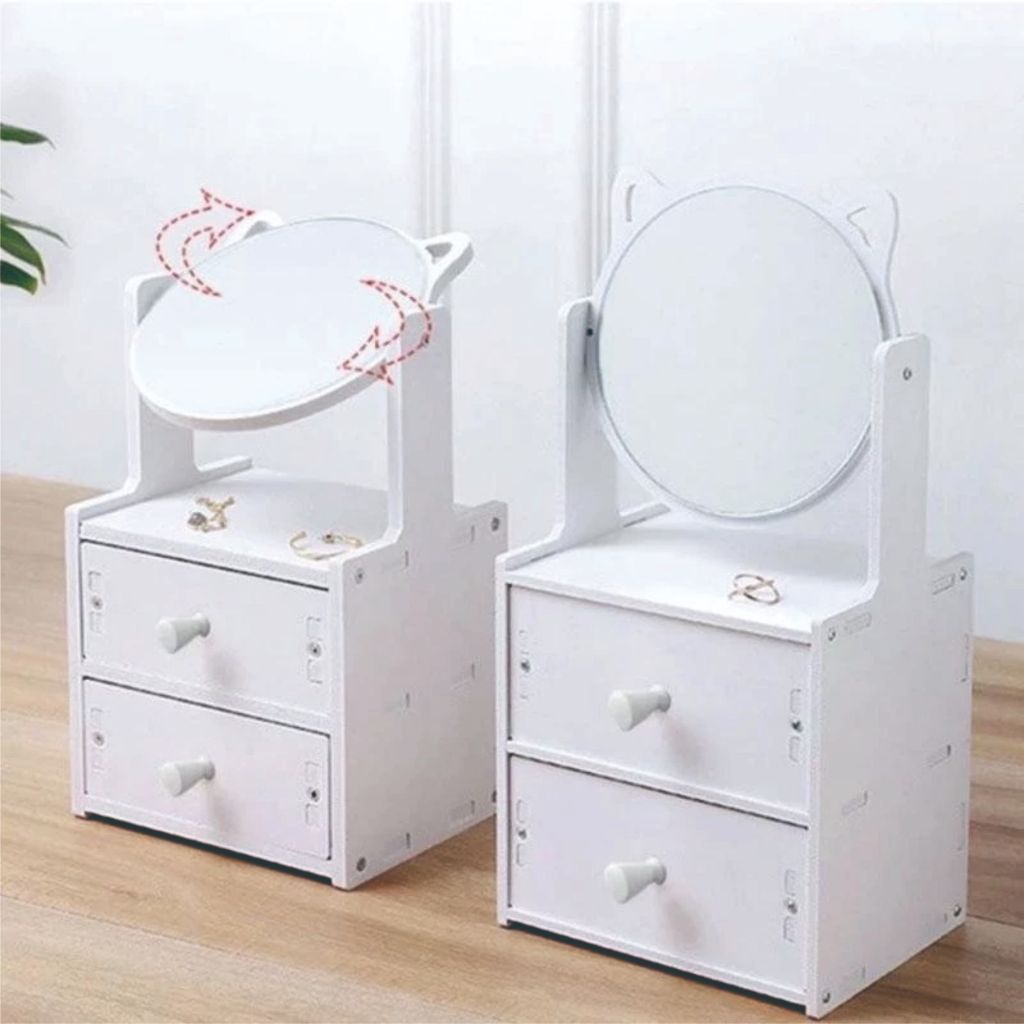 Rak Laci Cermin/Rak Makeup 2 Susun Dengan Cermin / Rak Kosmetik Tempat Make Up / Rak Cermin Make Up 2 Susun /
