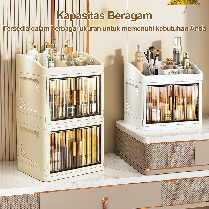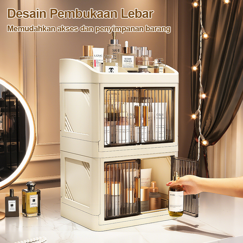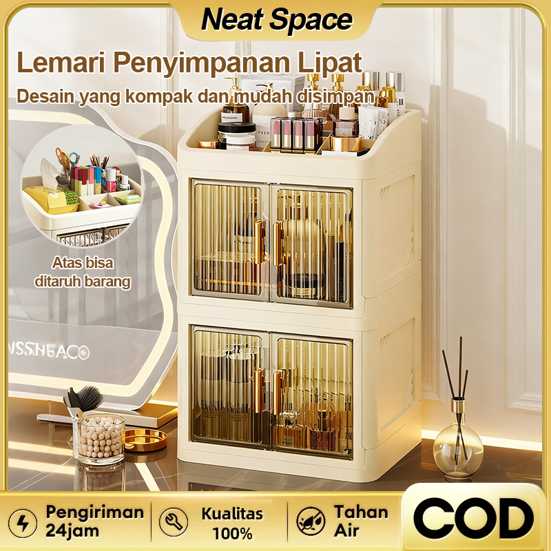 Neat Space Rak Meja Kosmetik Premium | Rak Organizer Make Up Pintu Sliding Box Storage Makeup Transparan Tahan Debu