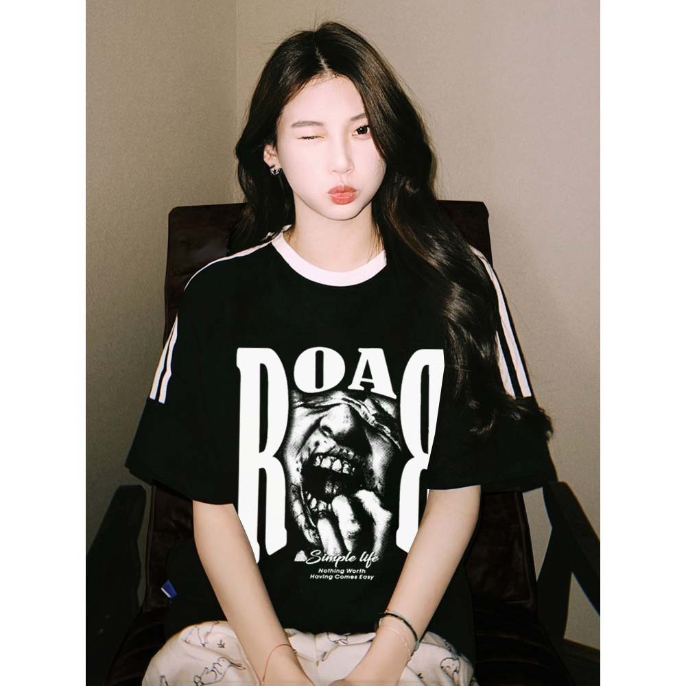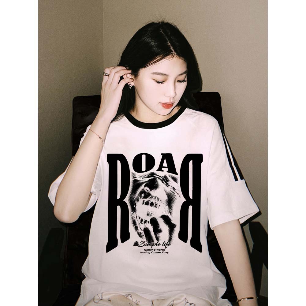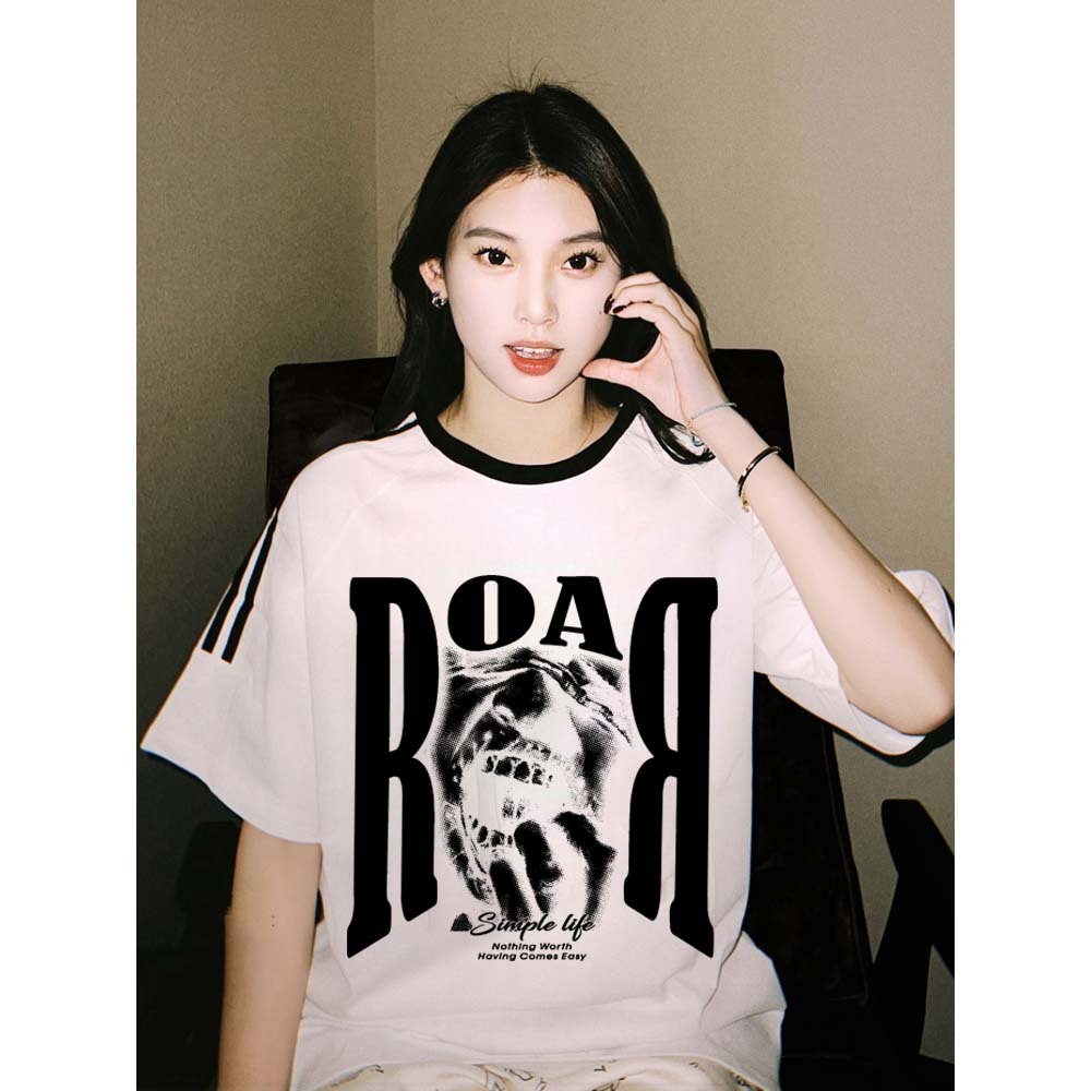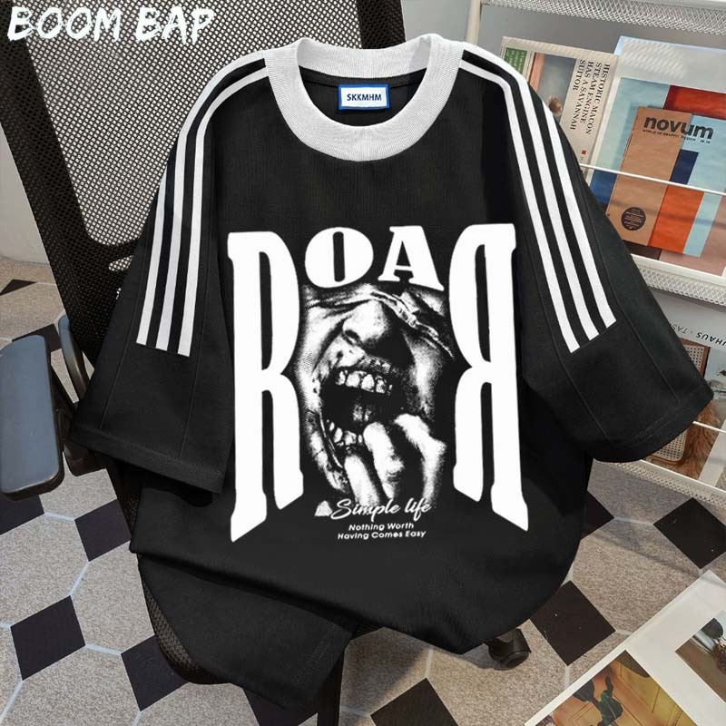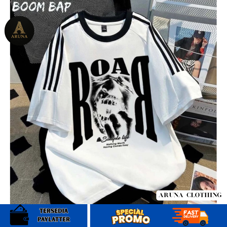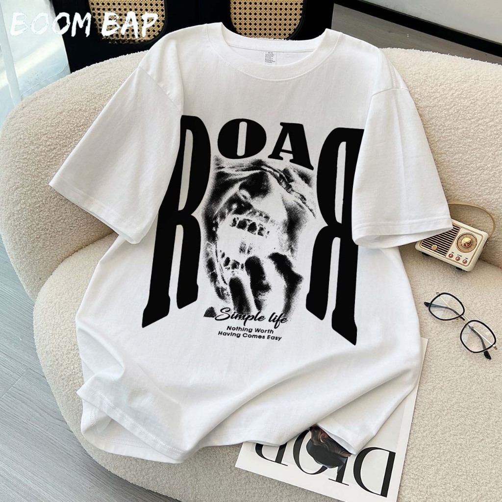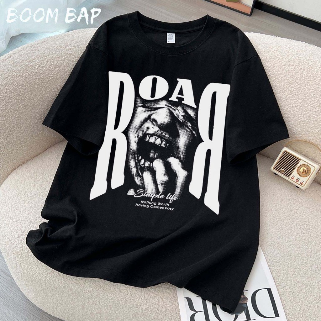 KAOS BOOMBAP American retro Style Tiga bar T-shirt Oversize ROAR Print top| Kaos Wanita Putih Kaos pria dan wanita