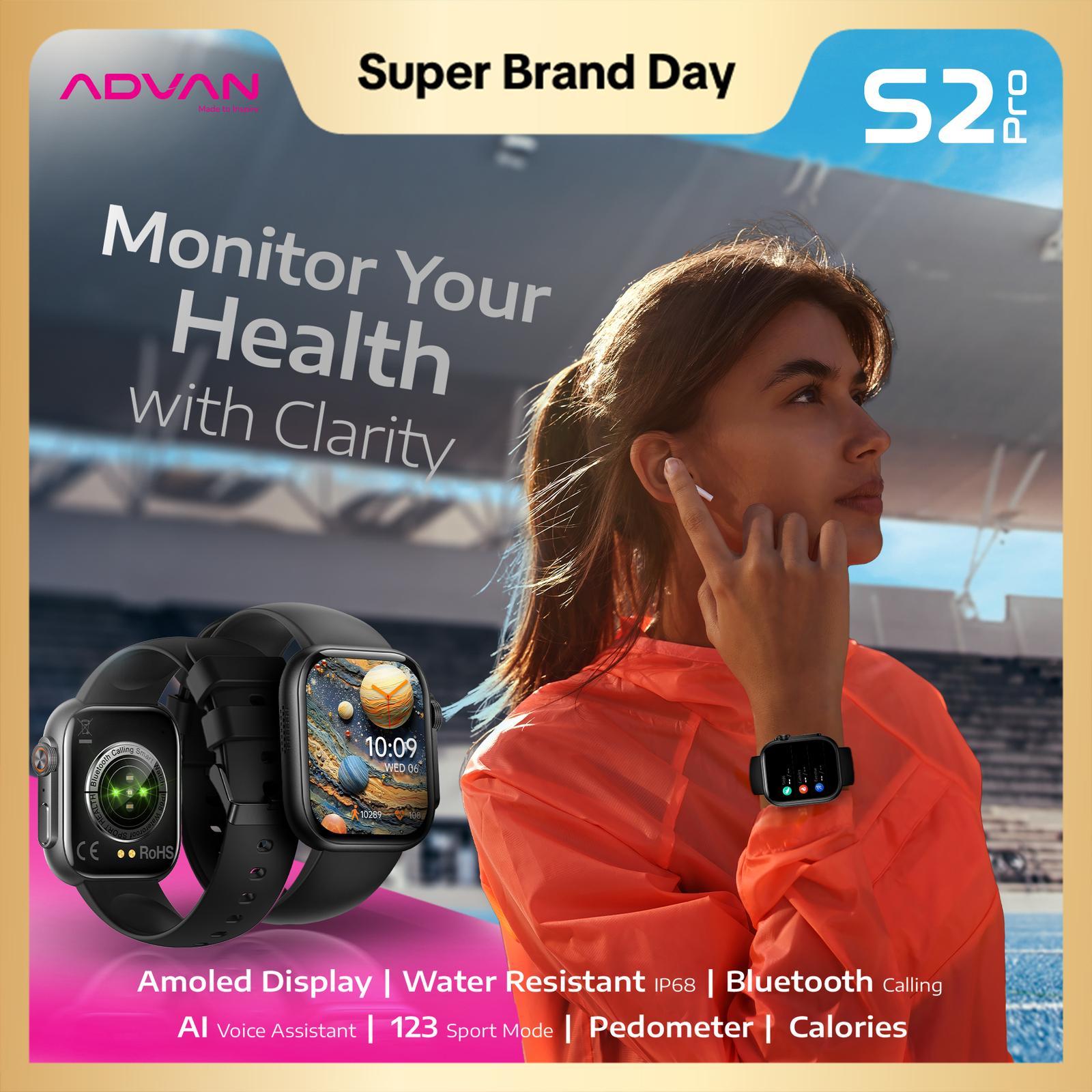 [2 JAM TIBA] ADVAN Smartwatch S2 Pro | AMOLED 2 Inch" | Bluetooth Calls| Ai Voice | Waterproof |123 Sport | advan s2 pro