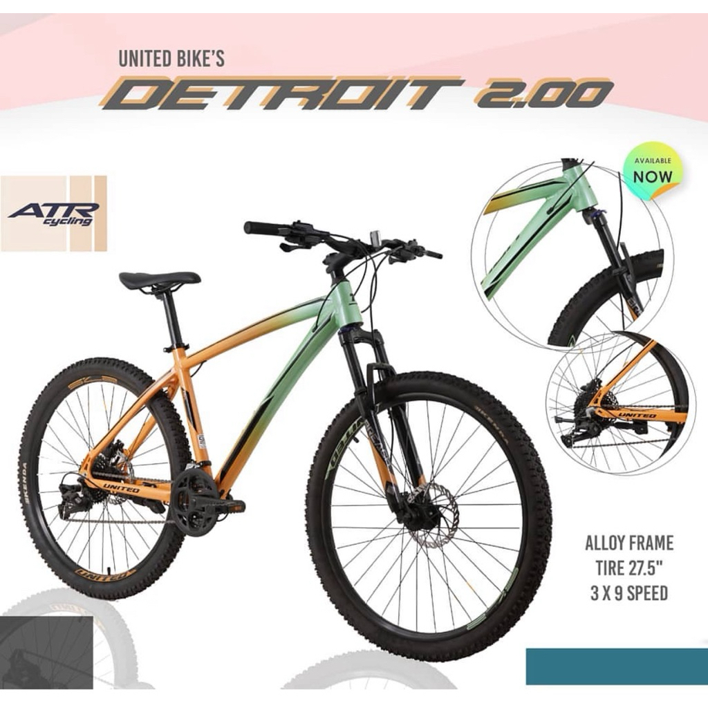 Sepeda Gunung 27.5 MTB UNITED DETROIT 2.0 Frame Alumunium 3x9 Speed Rem Hidrolik Terbaru