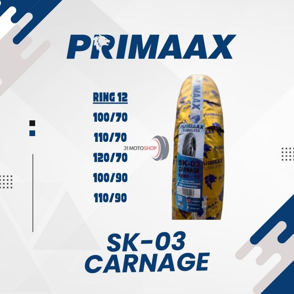 Ban Motor Tubeless Primaax Primax SK 03 Carnage 100 110 120 / 70 90 Ring 12 Vespa Scoopy Freego Fazzio Sprint Grand Filano