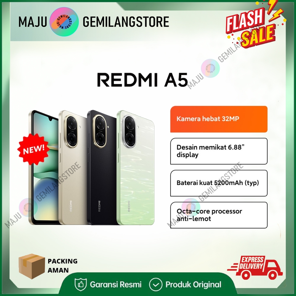 Redmi A5 (4GB+128GB) Layar besar 6,88" Kamera utama 32 MP Baterai 5.200 mAh octa-core anti lemot Garansi Resmi