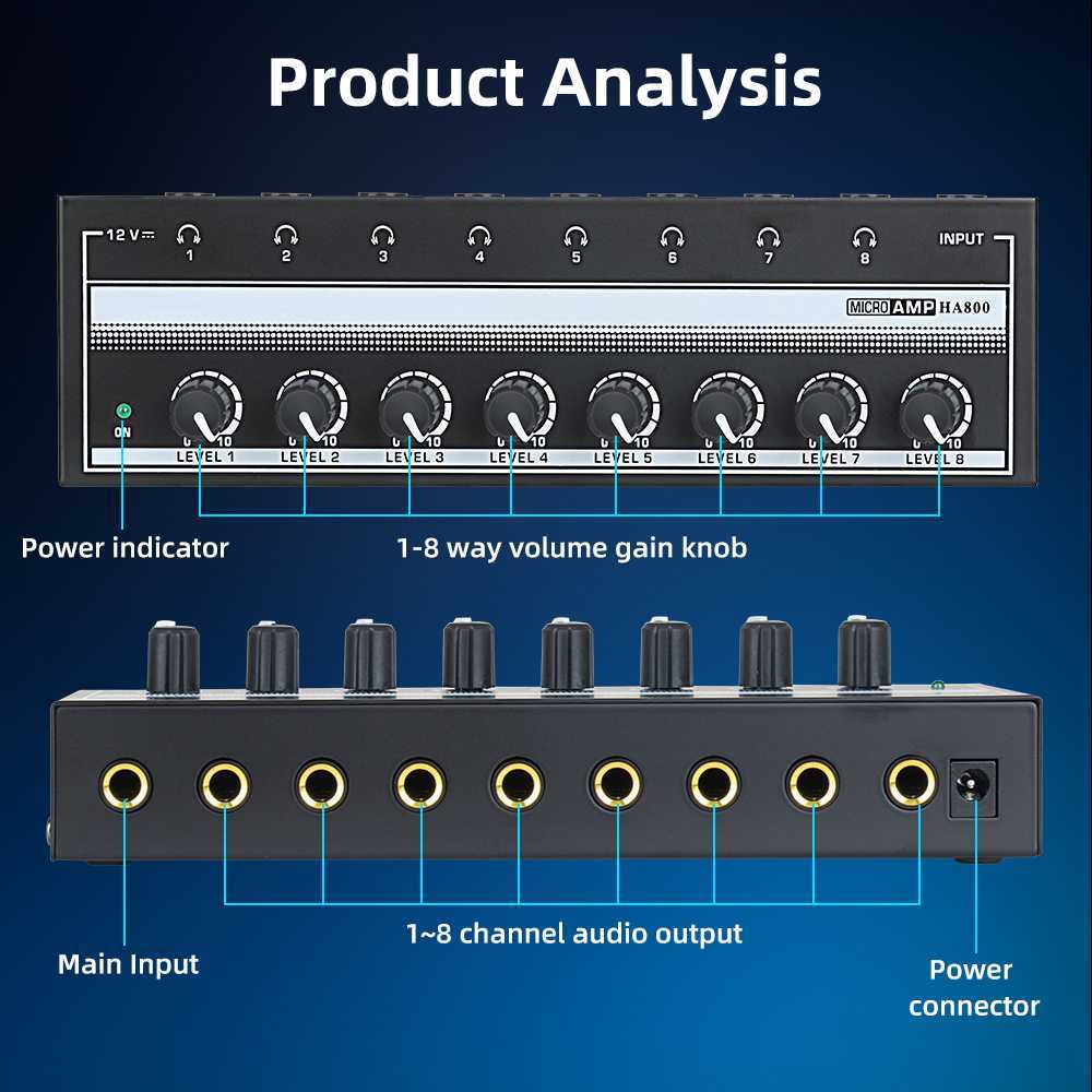 Micro mixer Amplifier Mikrofon Stereo Audio karaoke Headphone Splitter 8 Channel Volume Control