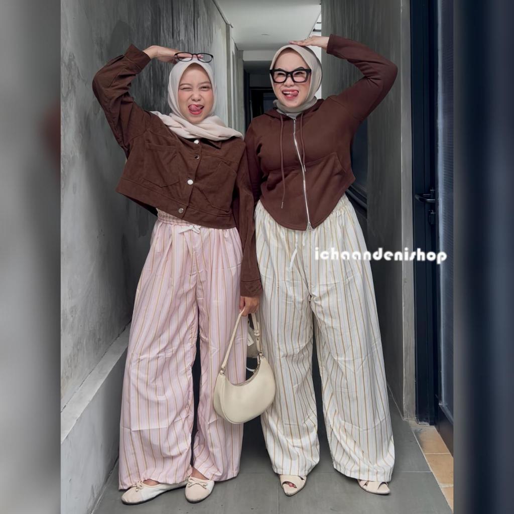 ICH - Kenny Pants - Everyday Pants - Stripe Pants - Celana Salur Kulot Jumbo Wanita Motif Salur Panjang Big Size