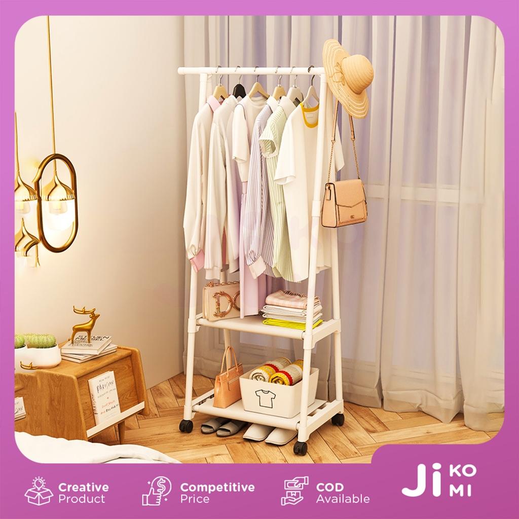 Rak Baju Yumi Triangle Gantungan Pakaian Minimalis 2 Tingkat 4 Roda Stand Hanger Modern Multifungsi