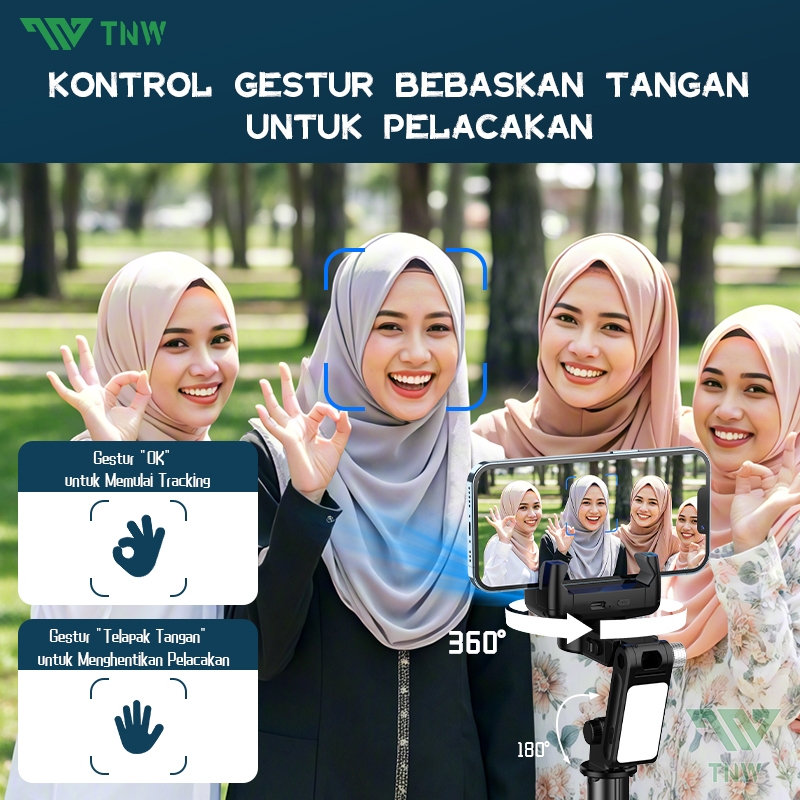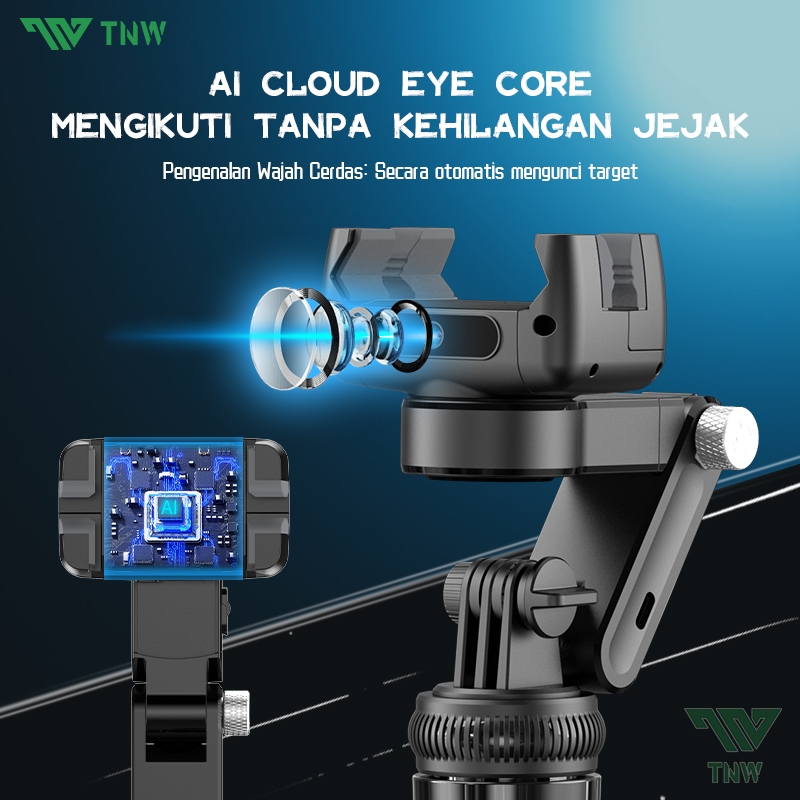 TNW C16 Multi-functional Auto Face Tracking Tripod AI Bluetooth Gimbal Stabilizer 360° Rotation Selfie Stick Tongsis Dengan Lampu