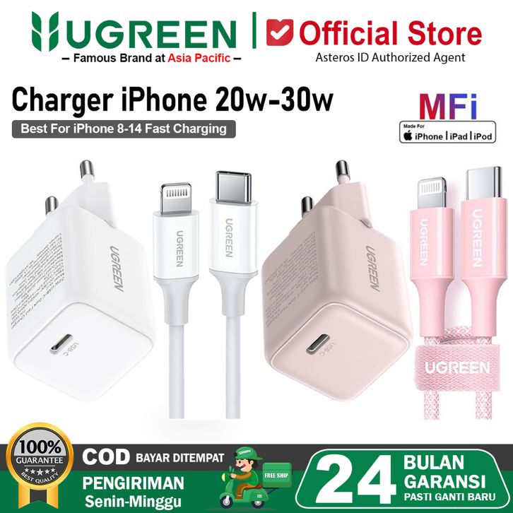 UGREEN Charger GaN N iPhone Lightning MFI PD Type C Fast Charging 20W 30W