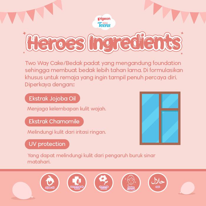 PIGEON TEENS TWO WAY CAKE | Bedak Foundation Padat Remaja | Natural Finish Look - Natural