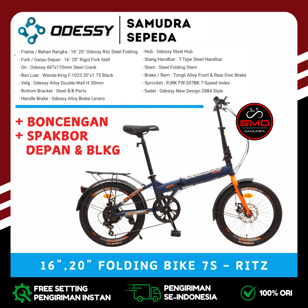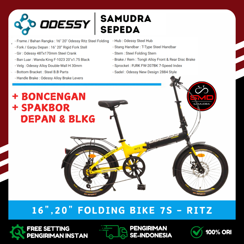 Sepeda Lipat Folding 20 Inch Odessy RITZ 7sp (PAKAI SPAKBOR DAN BONCENGAN) // INTERBIKE IC 2020 DB Murah BDG