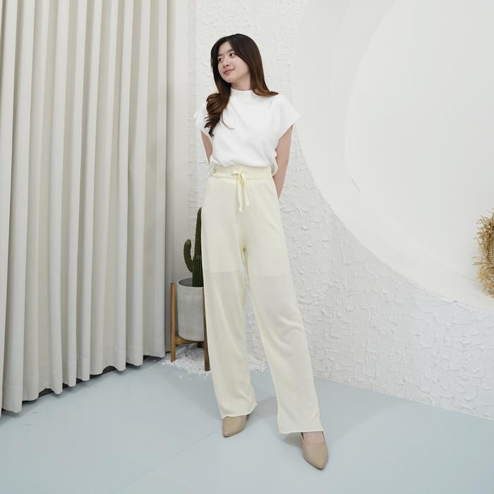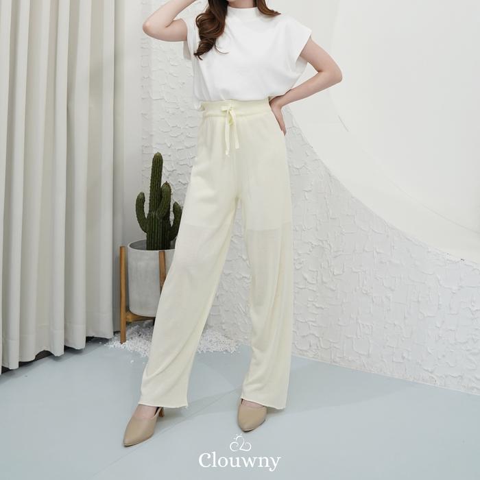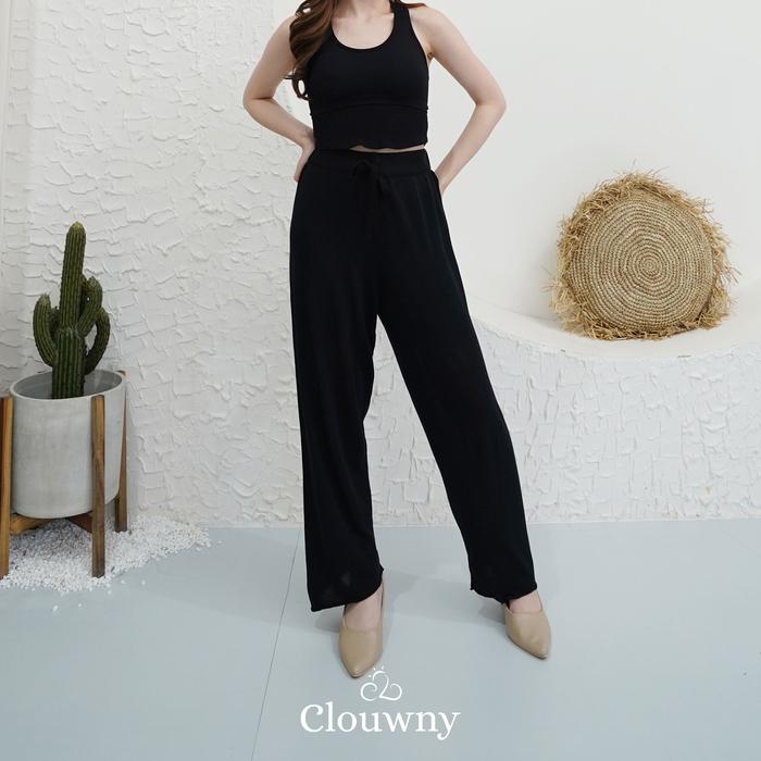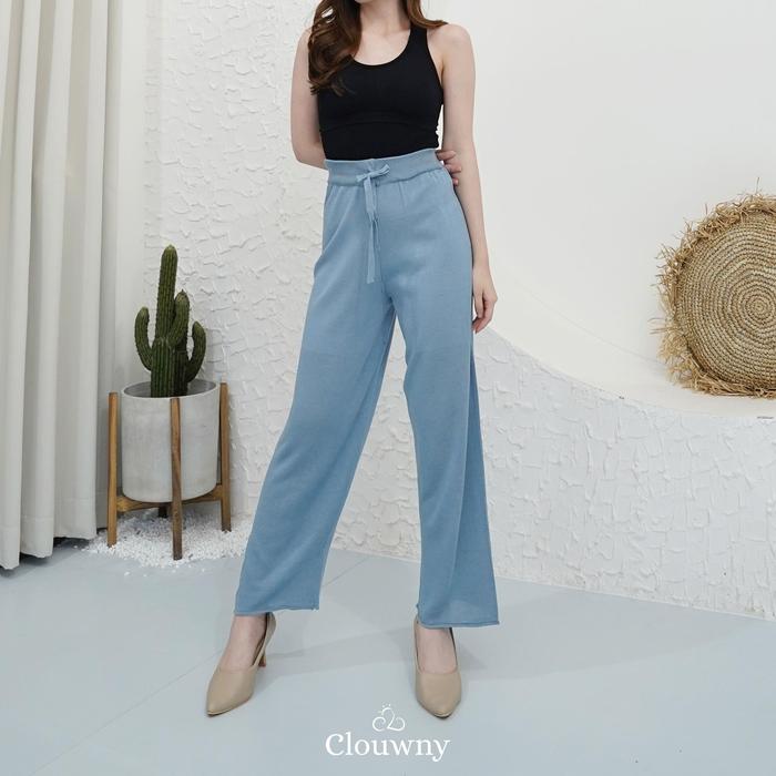 CLOUWNY- CELANA PANJANG RAJUT KULOT BERNY CULOTTES KNIT PANTS WANITA LINEN CASUAL CEWEK CRINKLE DEWASA - BLUE, ALLSIZE