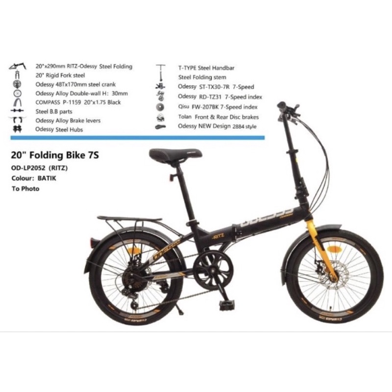 Sepeda Lipat Odessy 16 & 20inch 52 Ritz With Bahasi dan Spakbor Hi Teen Steel 7S