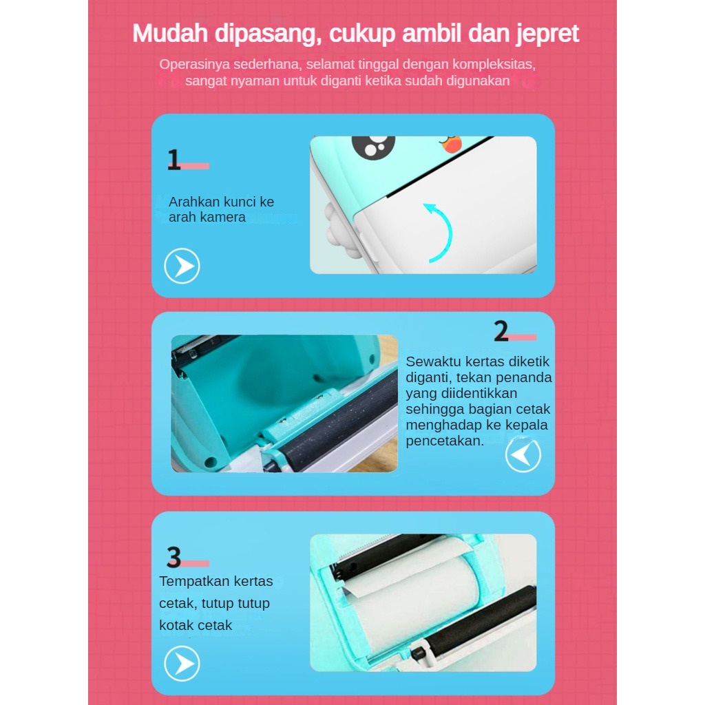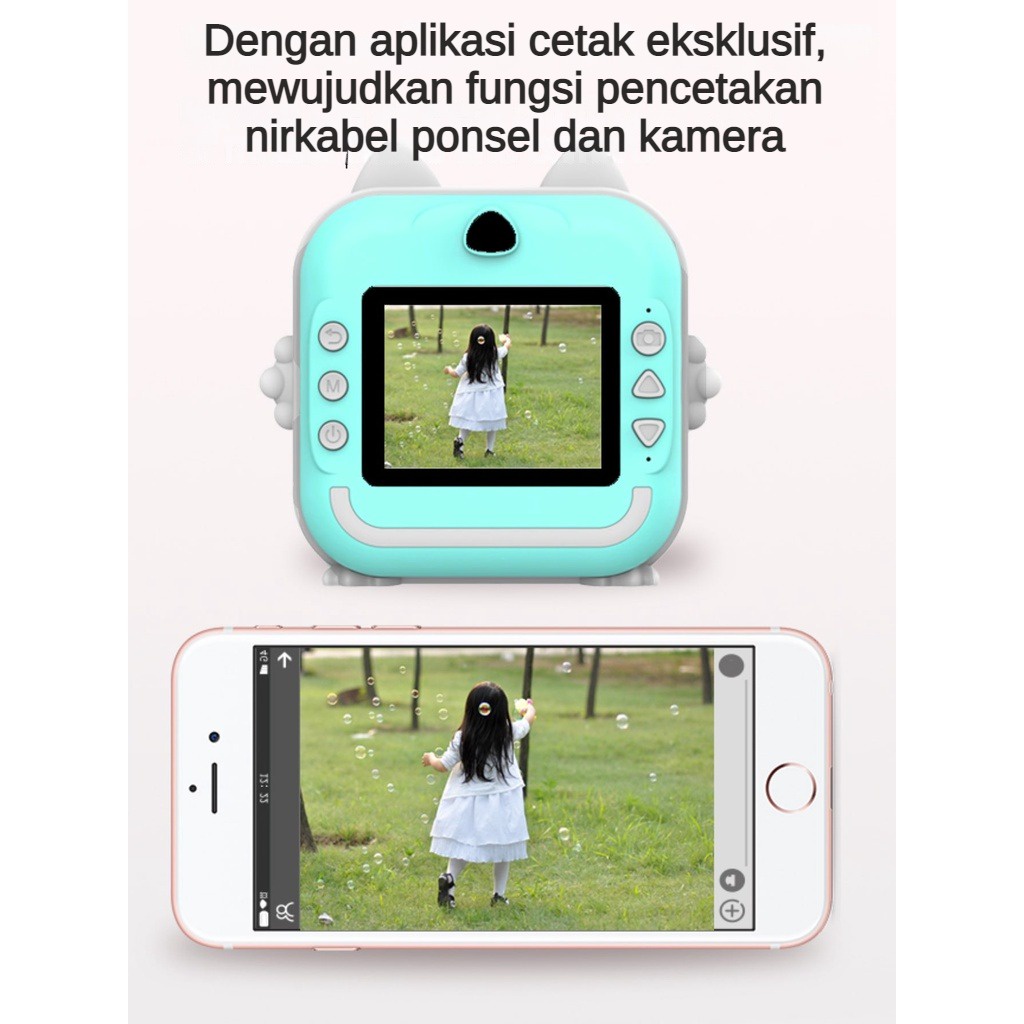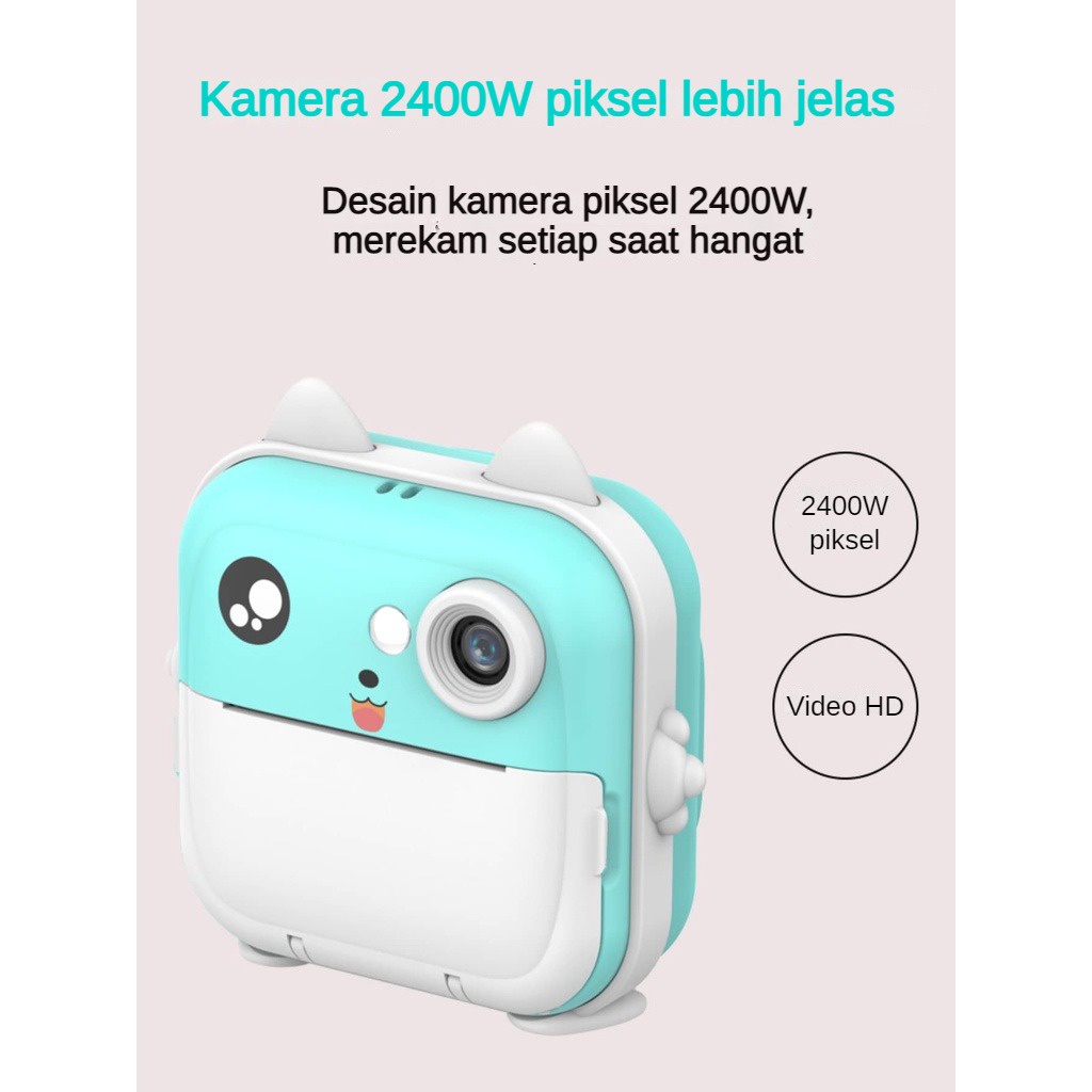 CLUBLU Kamera INSTANT Pocket Anak Mini Digital Pencetak Foto Pixel 24MP Video 720P Printer Termal