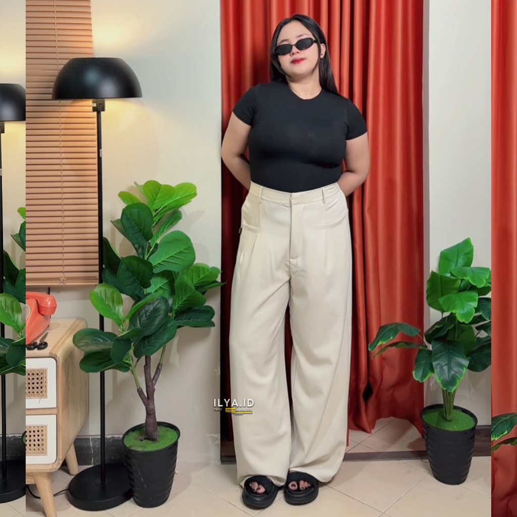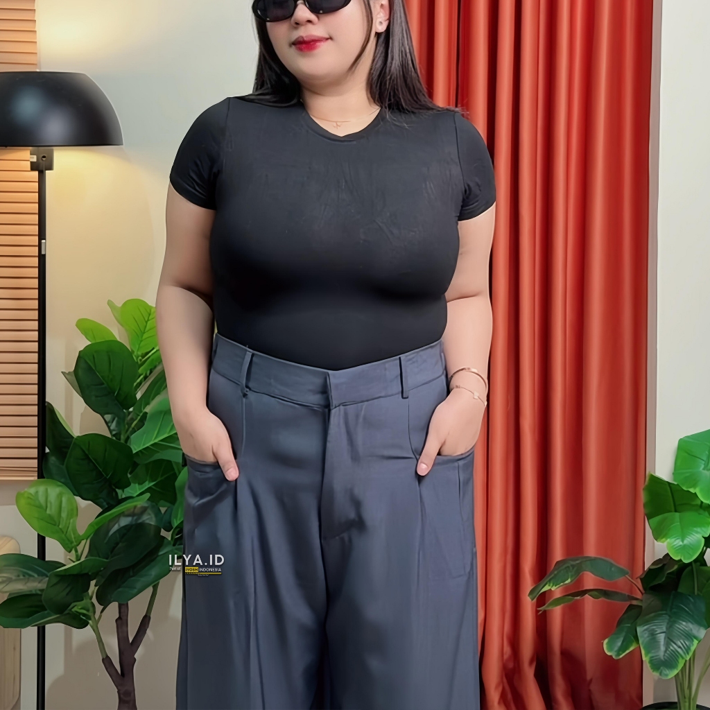ILYA Elena Pants Semiwool Stretch (Melar) JUMBO BB 50-120 Kg - Celana Kulot Wanita Formal & Casual