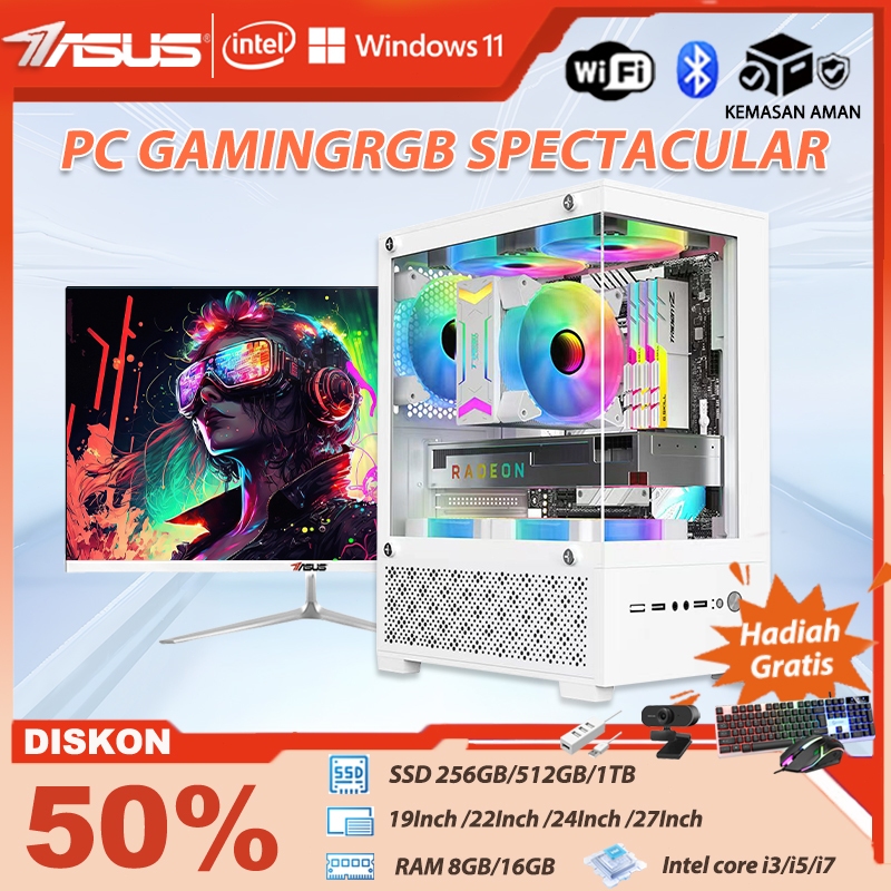 ASUS Intel i5/i7 PC gaming fullset CPU Komputer Desktop Kantor 4 Core & 8 Thread 32G RAM LAN/WIFi Mesin Perakitan Desain Kipas RGB
