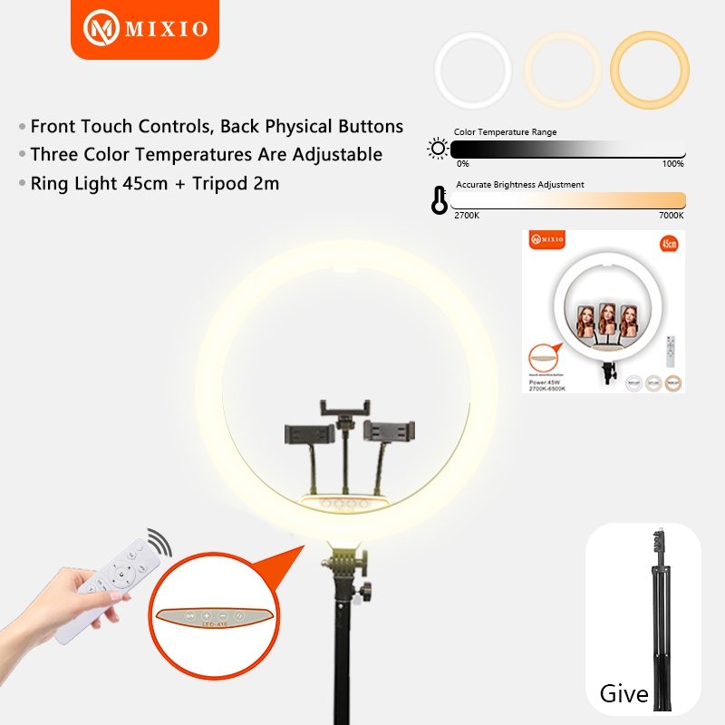 MIXIO Ring Light 45cm + Light Stand Tripod 2M with 3 Holder HP & Remot